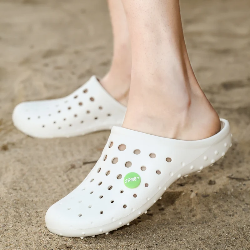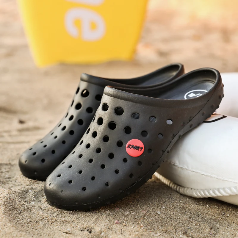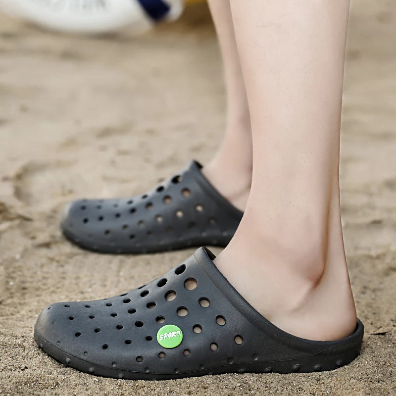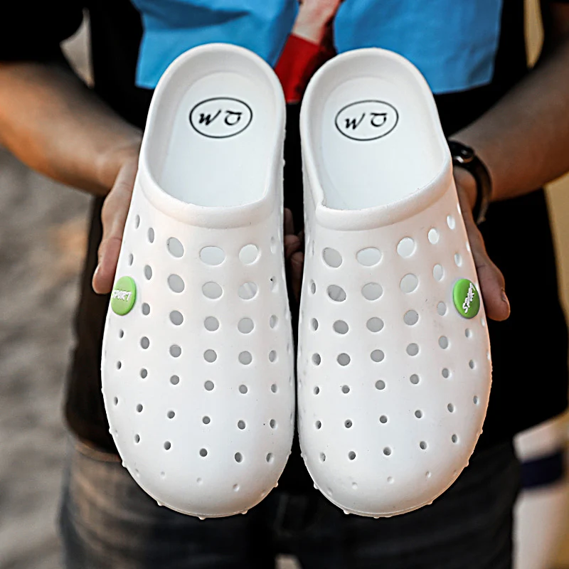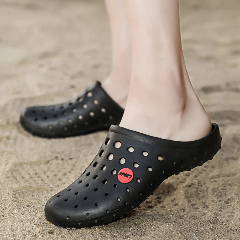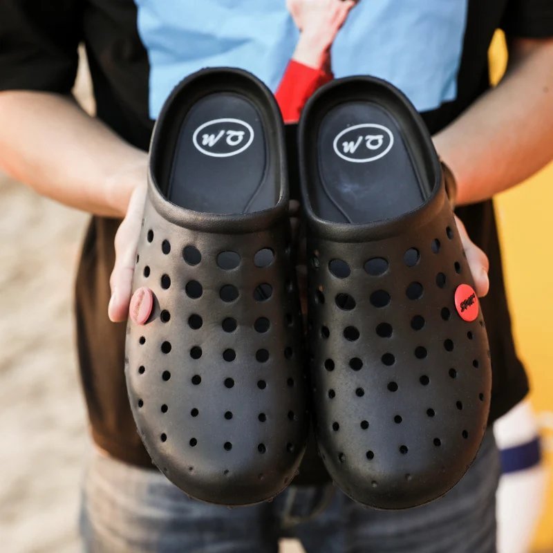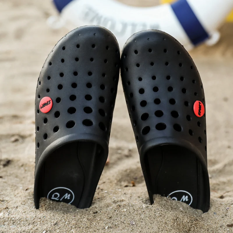 Summer Men’s Slippers Soft Bottom Non-slip Beach Shoes Flip Flops Man Outside Openwork Sandals Home Bathroom Slippers Big Size