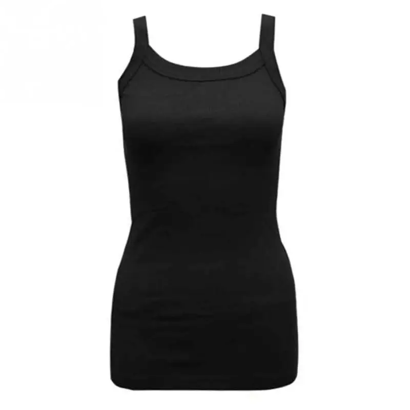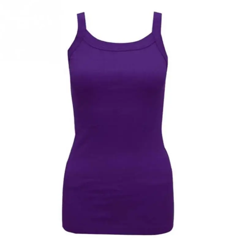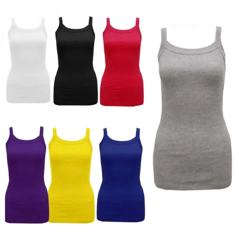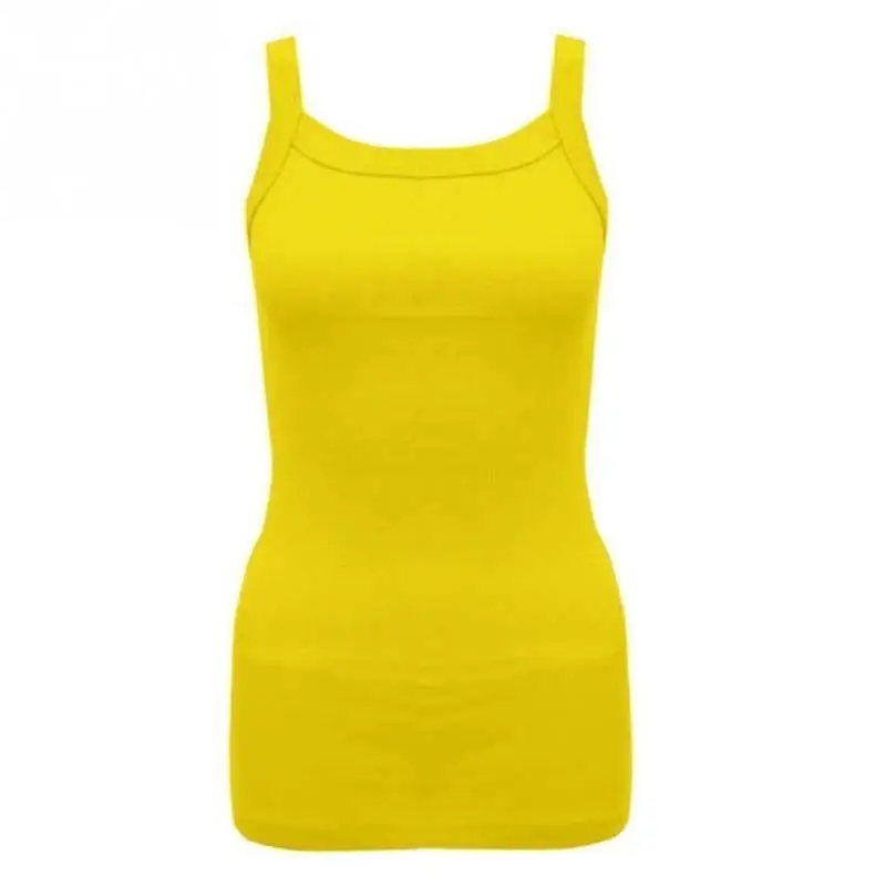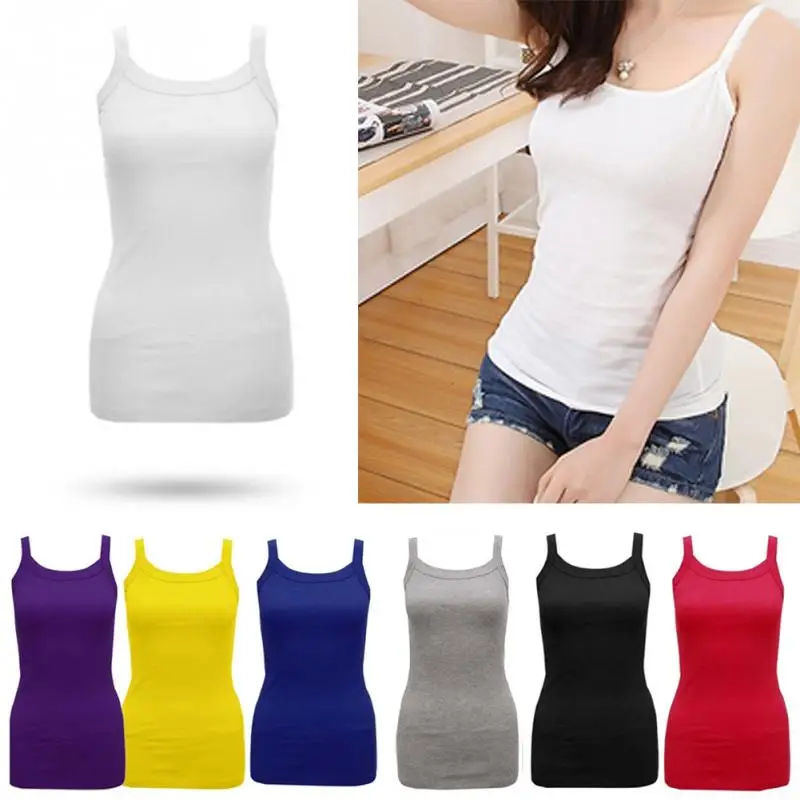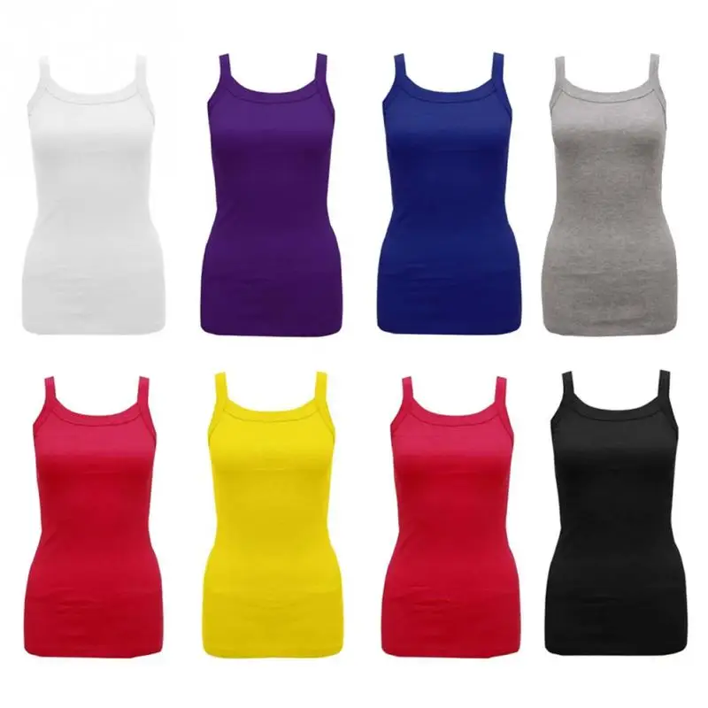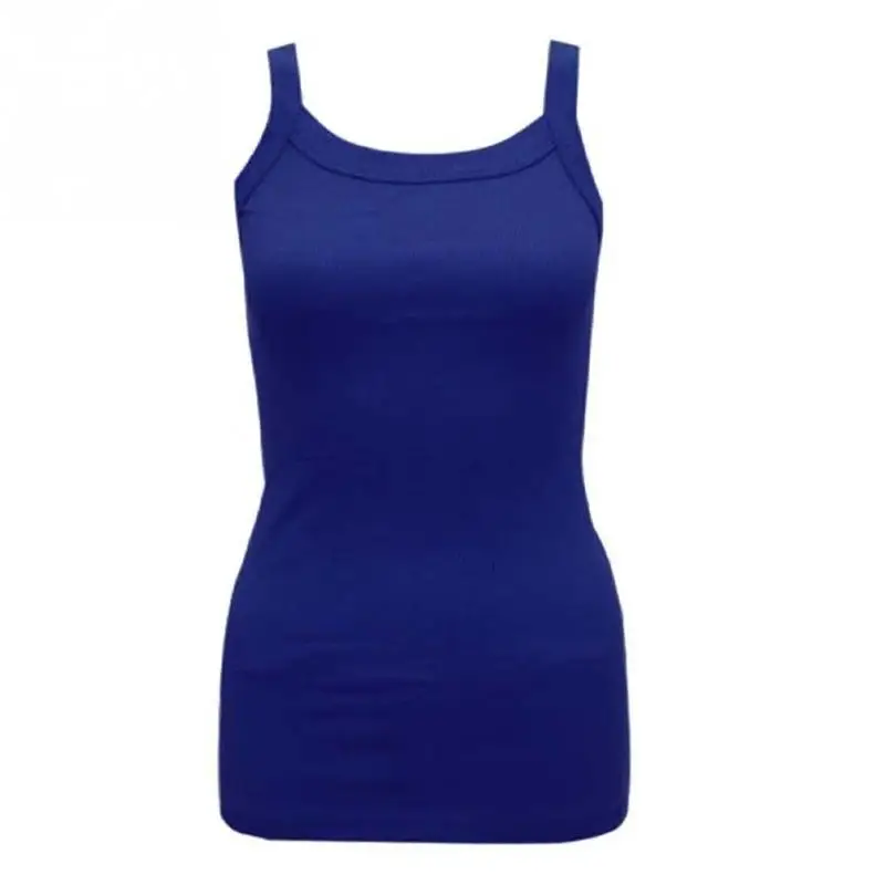Summer New Fashion Ladies Round Tank Tops Female Cotton Blending Casual Camisole Spaghetti Straps Vest Tops Multicolor