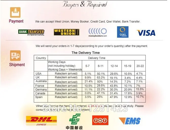 *You can submit refund requests within 15 days after the guaranteed period for delivery (45 days) has expired. You can do it by sending a message on Contact Us page
