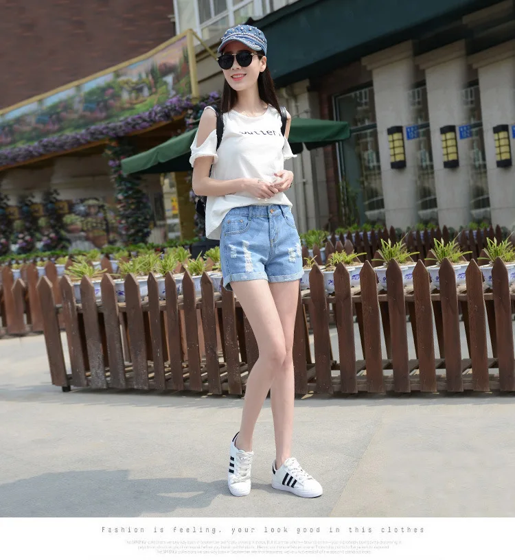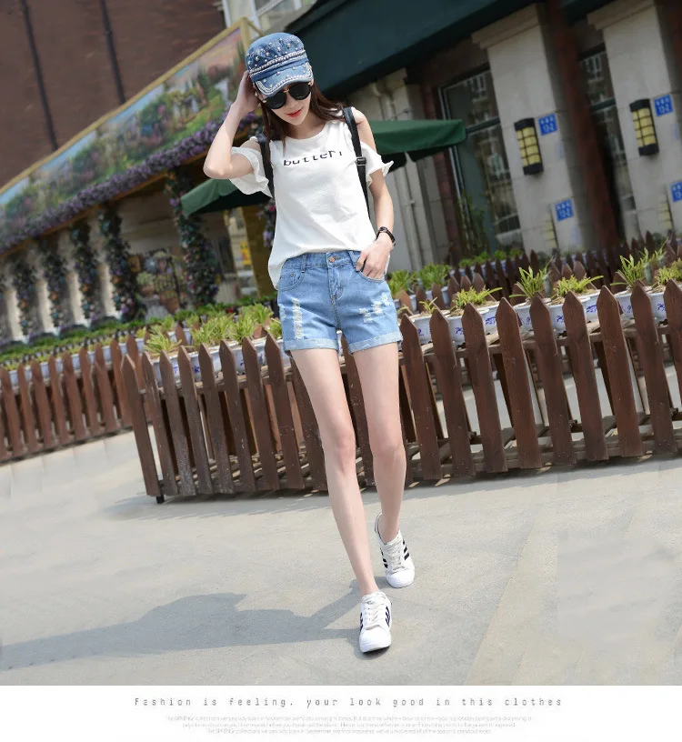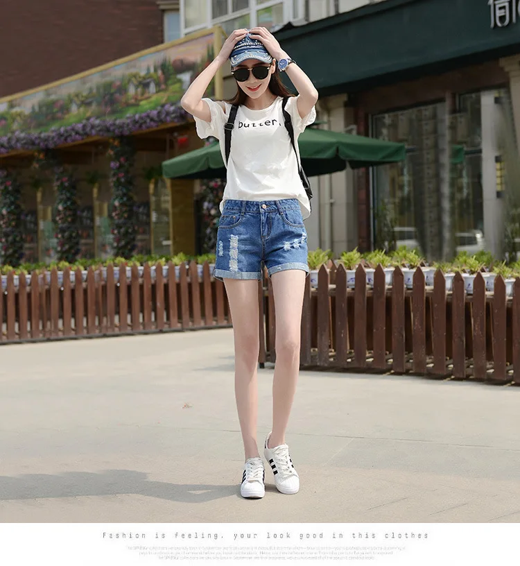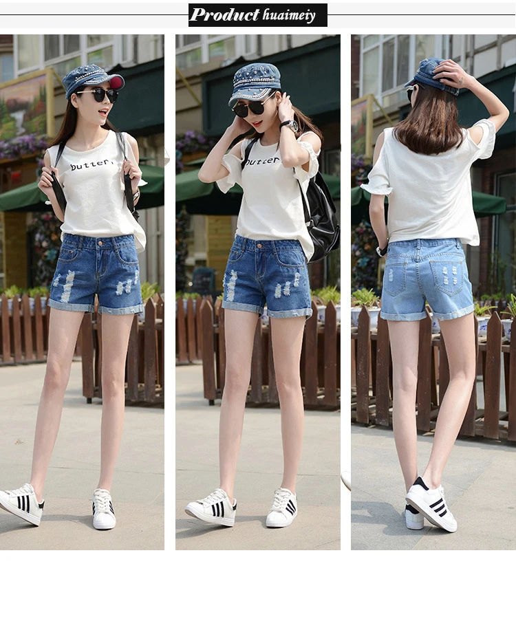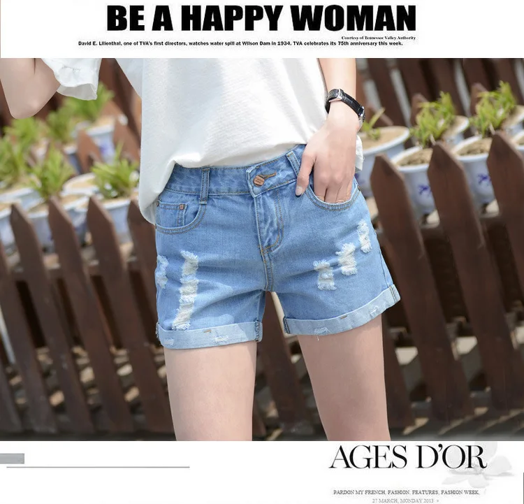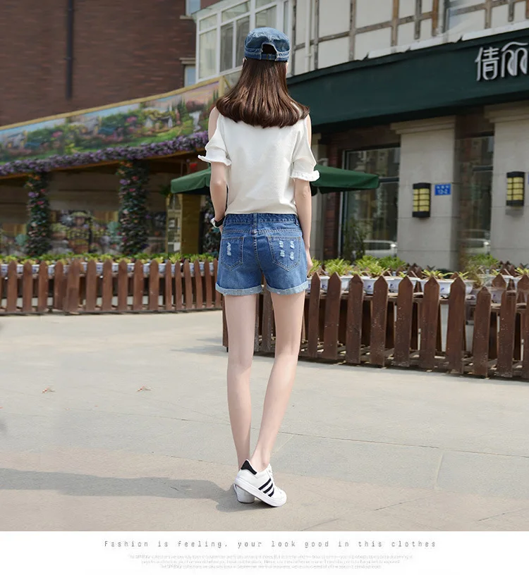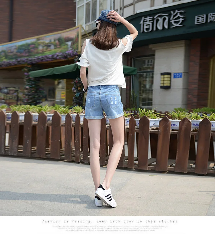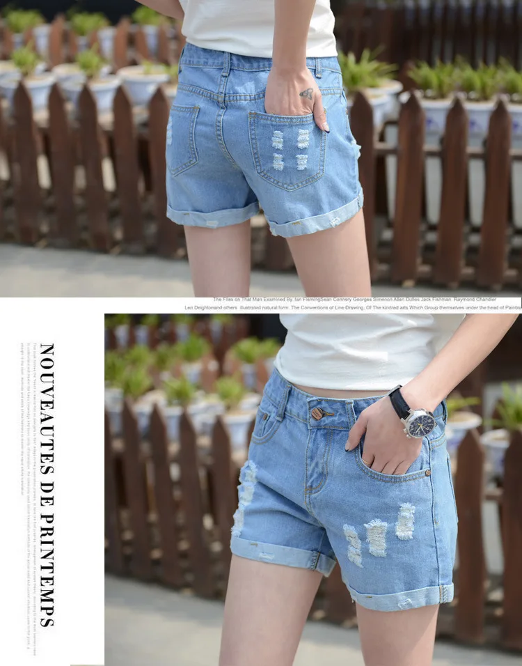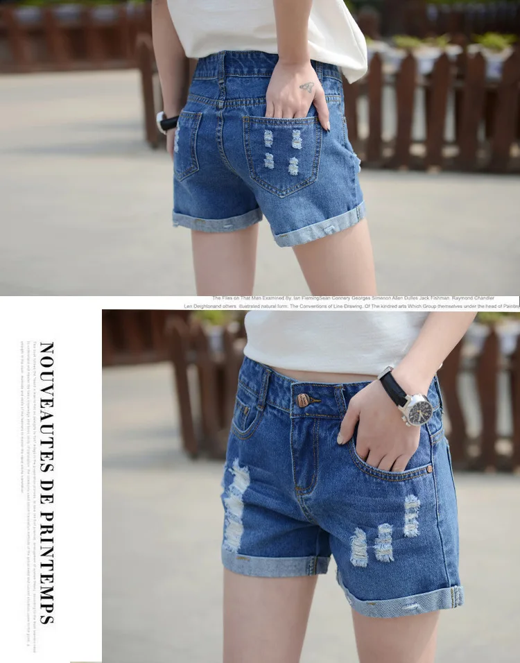 Summer Shorts For Women Retro Fashion All-match Women Denim Ripped Slim Short Pants Female Thin Curling Lager Size Short Jeans