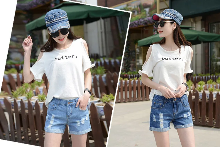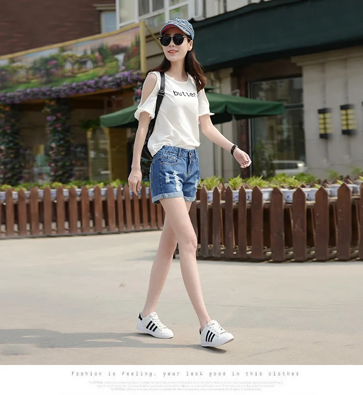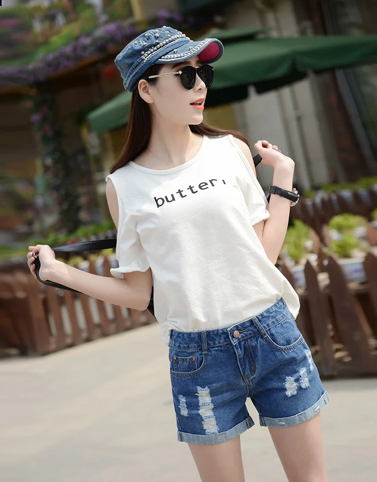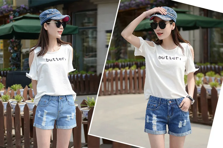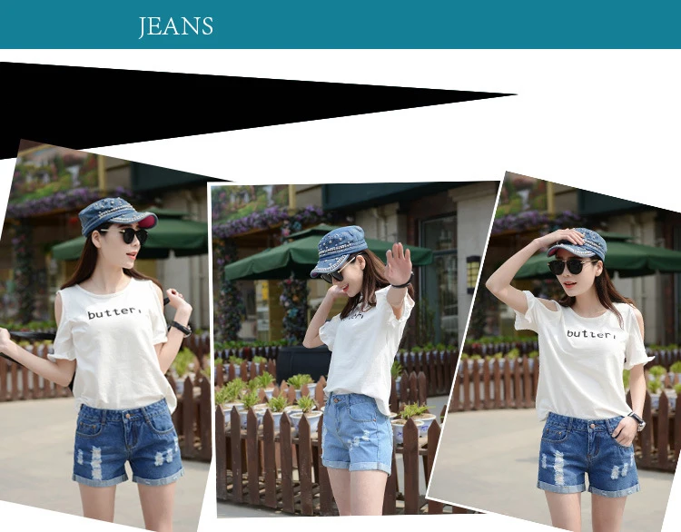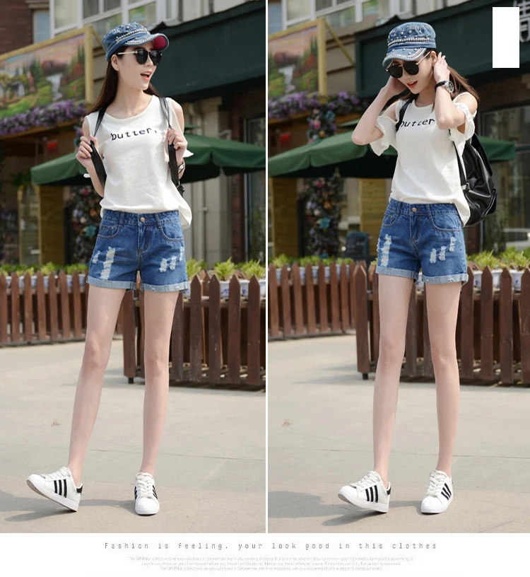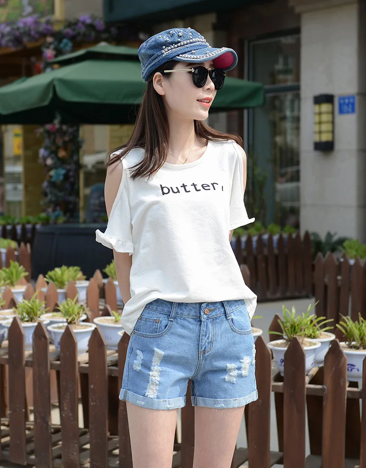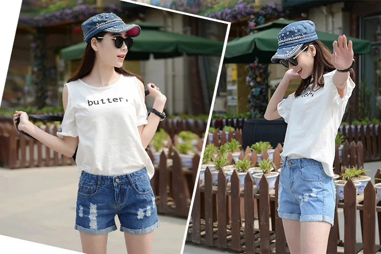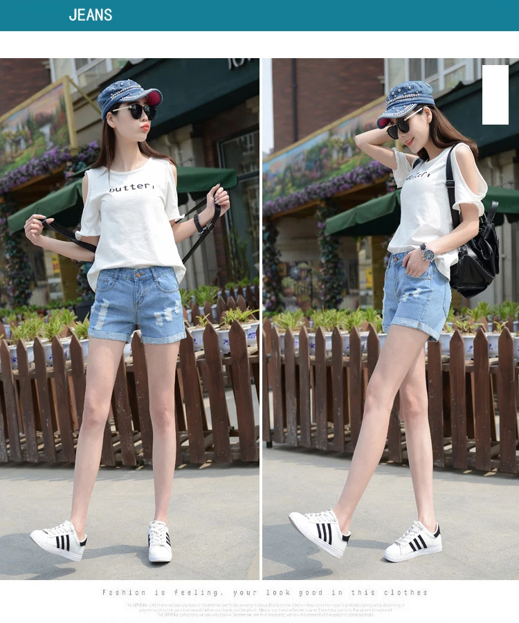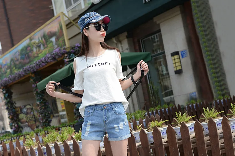 Summer Shorts For Women Retro Fashion All-match Women Denim Ripped Slim Short Pants Female Thin Curling Lager Size Short Jeans