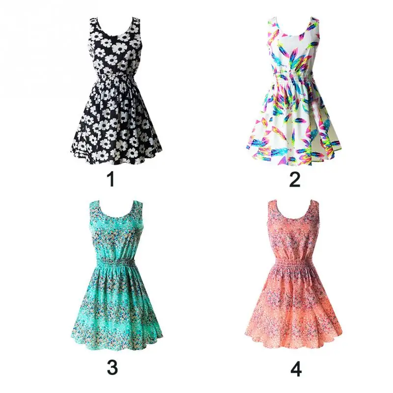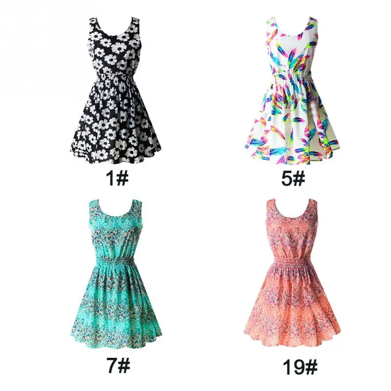 Summer Sleeveless Dress Women Floral Print Chiffon Mini Dresses Country Style Short Beach Casual Sleeveless Shift Dresses