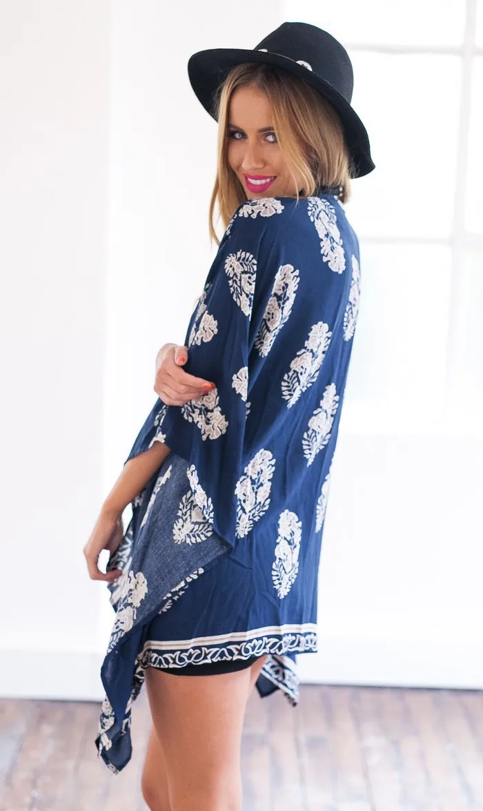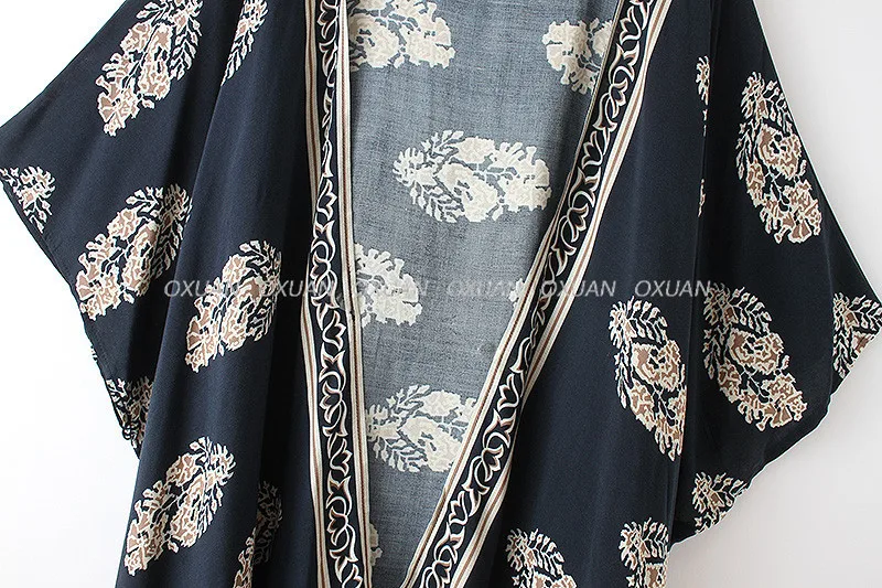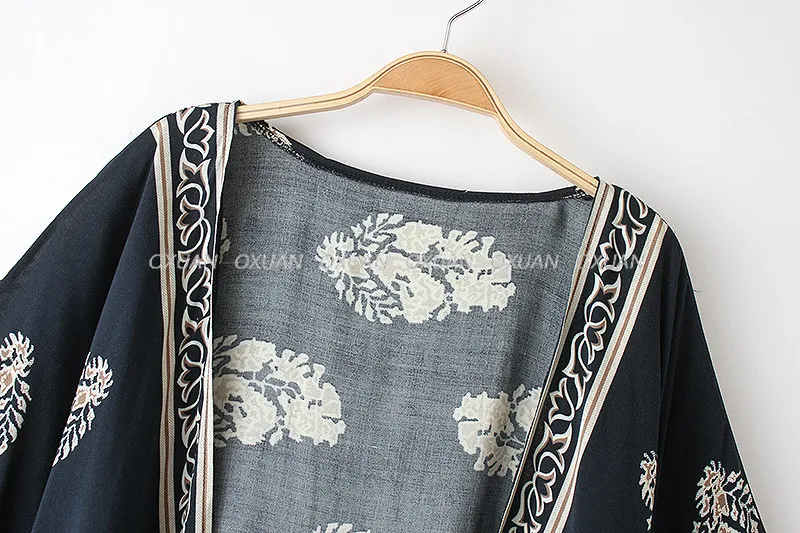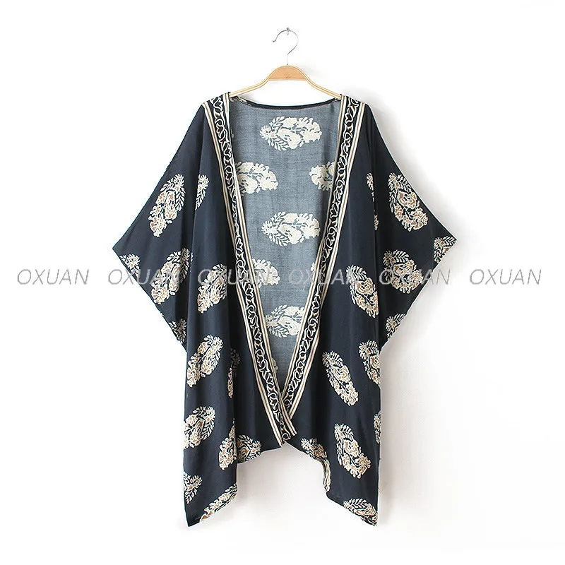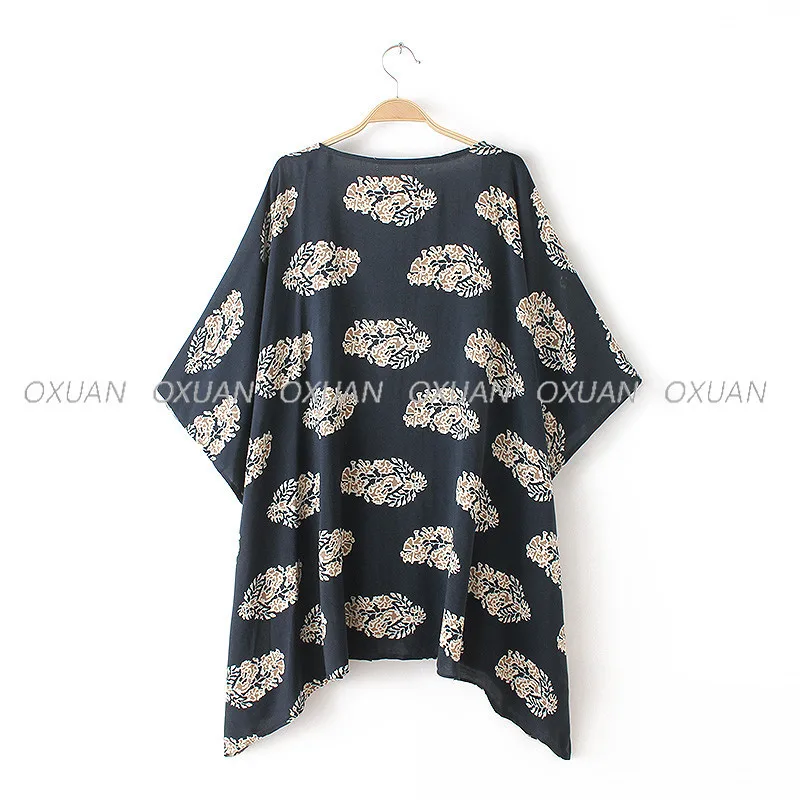Summer Thin Women Floral Print Kimono Hippie Cardigan Coat Batwing Short Sleeve Jacket Blusas Femininos Hot Sale