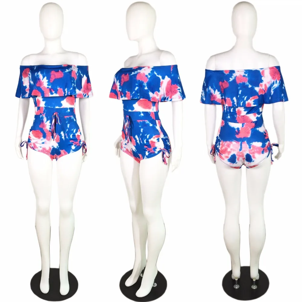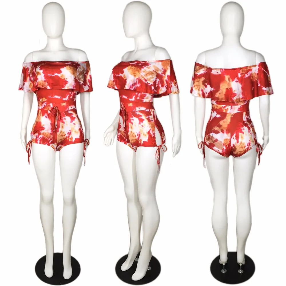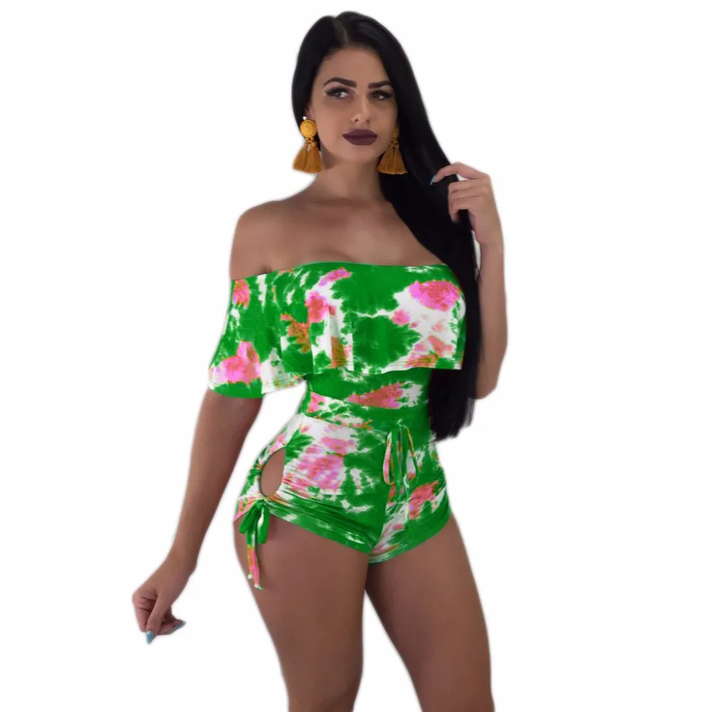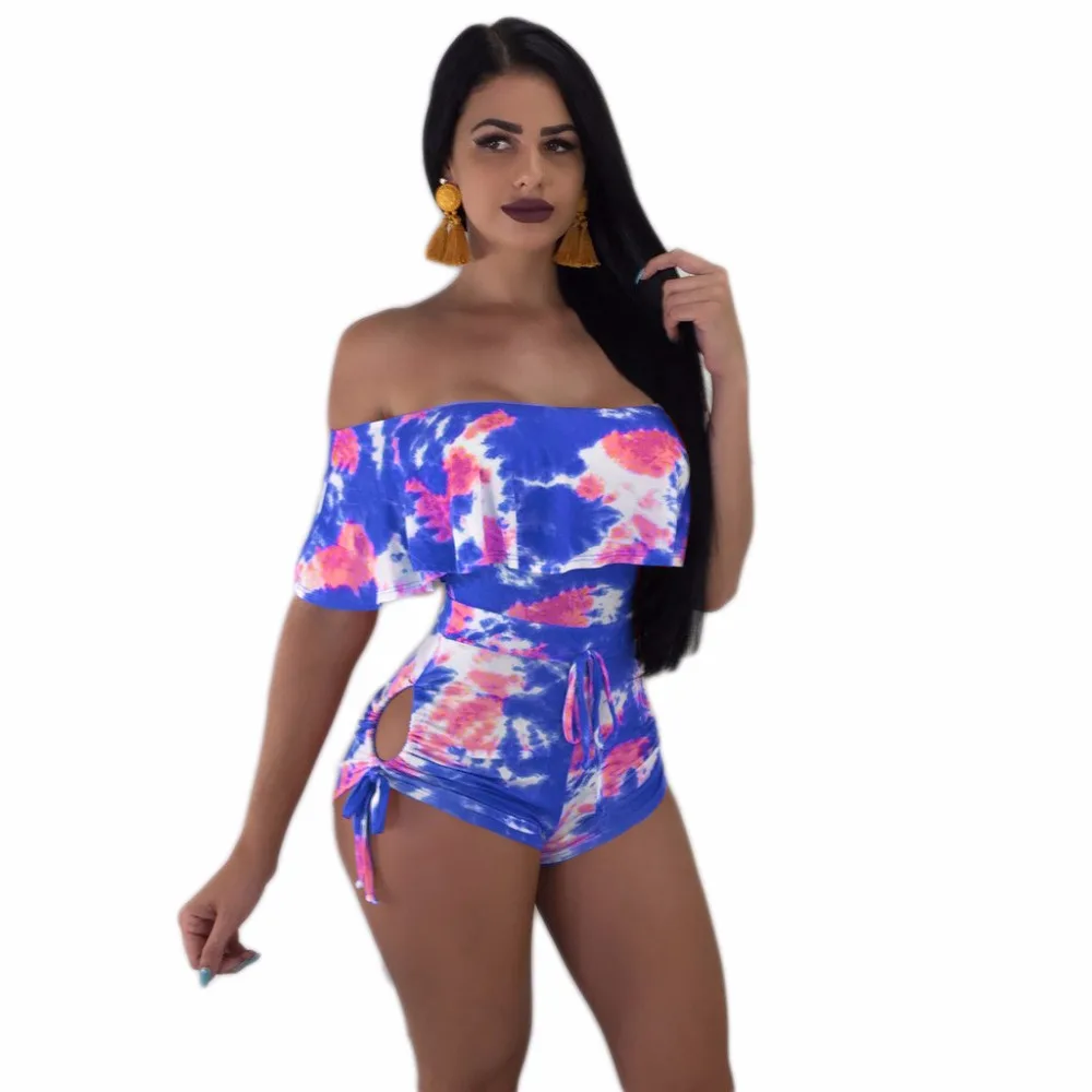 Summer women Overalls Jumpsuits 2018 Print Slash Neck Backless Outfit playsuits casual sexy fashion Bandage rompers U7012