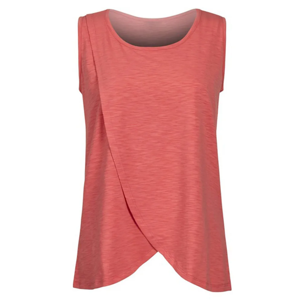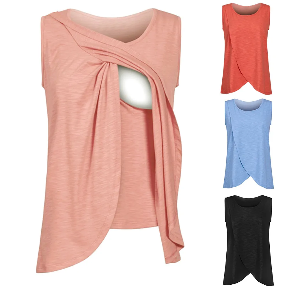 Summer Women’s Maternity Clothes Nursing Wrap Top Cap Cotton Sleeveless Double Layer Blouse Top Solid Soft Pregnant T-Shirt