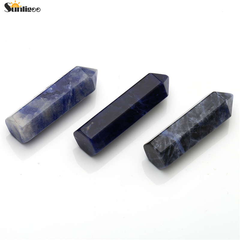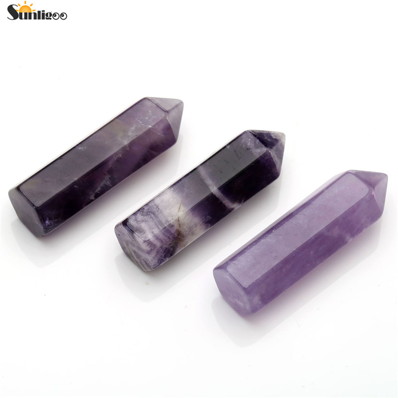 - –1pc of natural Amethyst / Rose Quartz / Sodalite / Clear Quartz gemstone 6 facet single point stone figurine sphere home decor fengshui (Pay Attention: this is natural stone , each one depth would be a little different and the size is 10*35mm. will choose randomly to ship )
