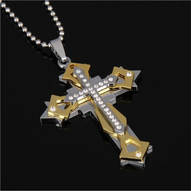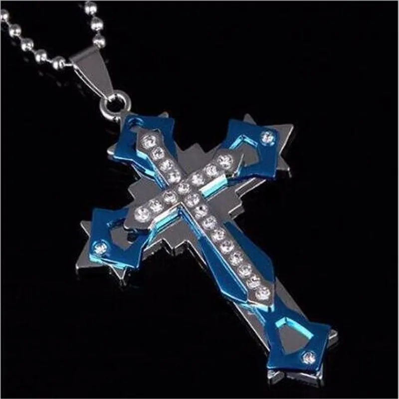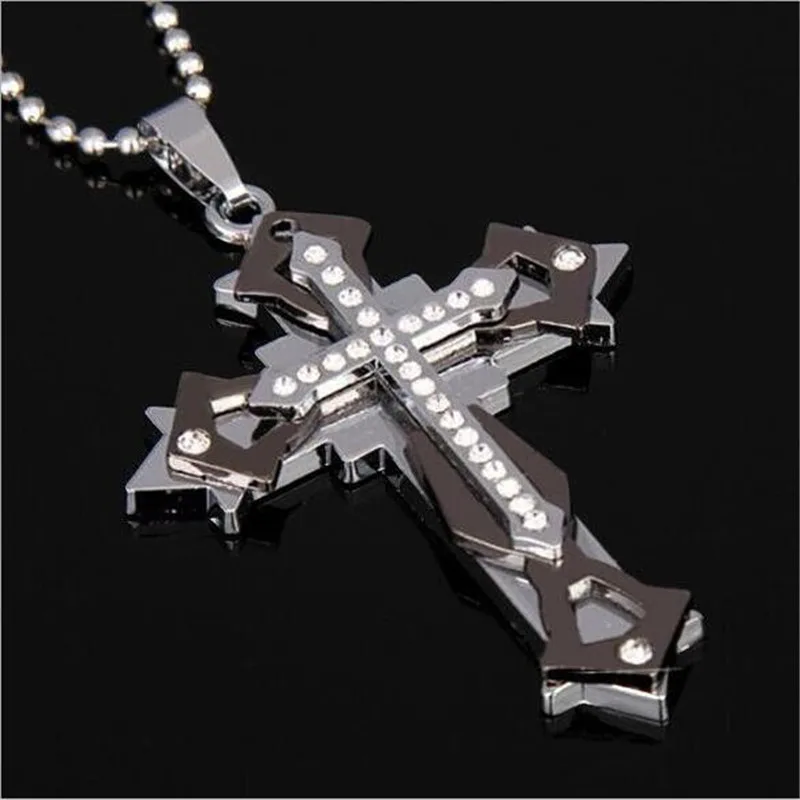 Super Cool 50cm Titanium Steel Cross pendant necklace With Crystal Men’s Fashion Jewelry Christmas Gifts