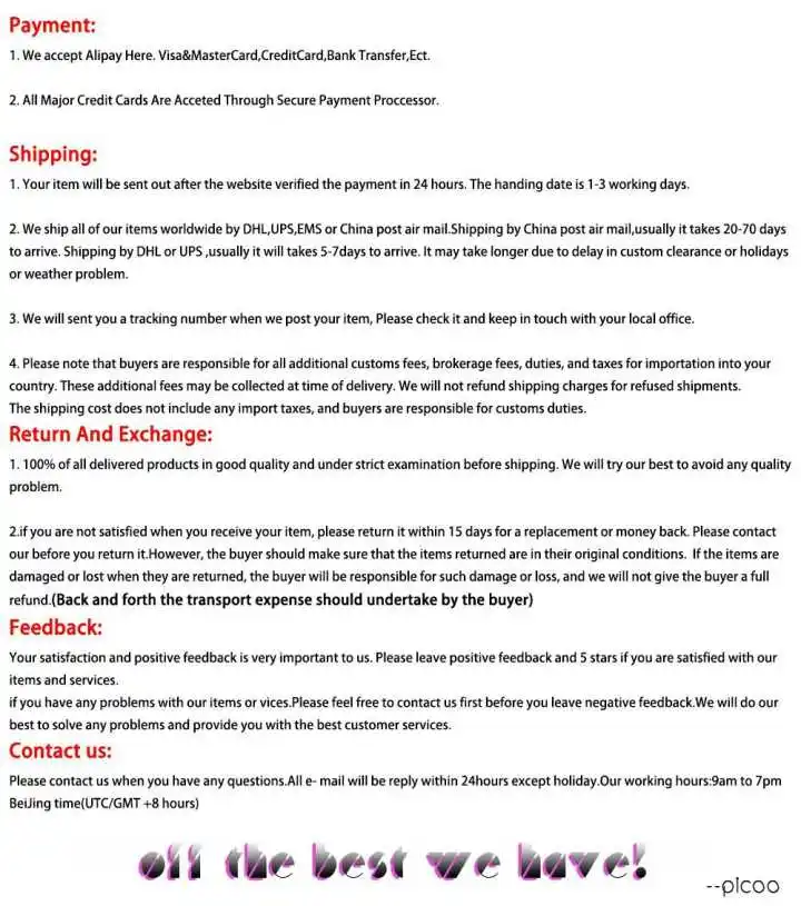 We are not responsible for any custom fees once the items have shipped. By purchasing our products, you consent that one or more packages may be shipped to you and may get custom fees when they arrive in your country.