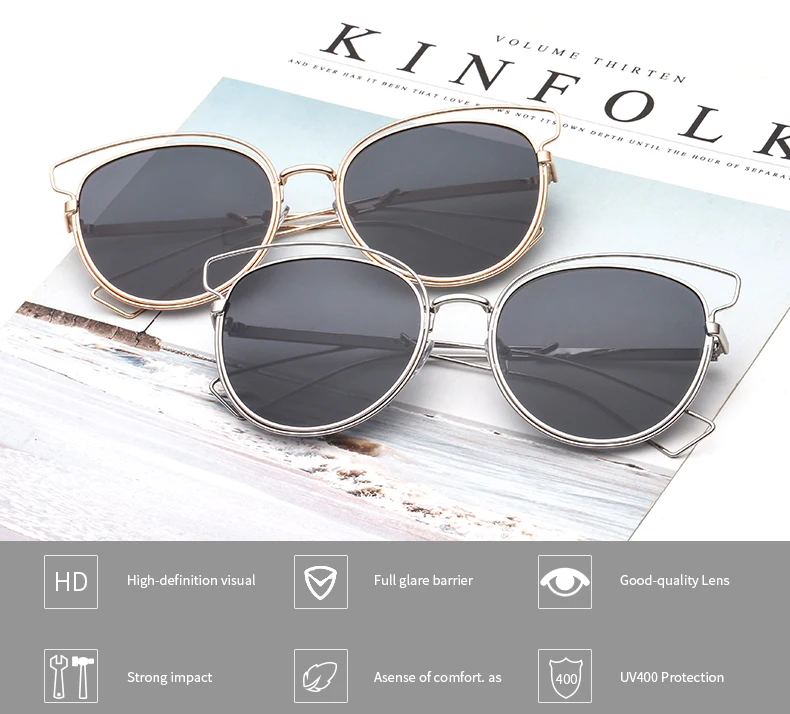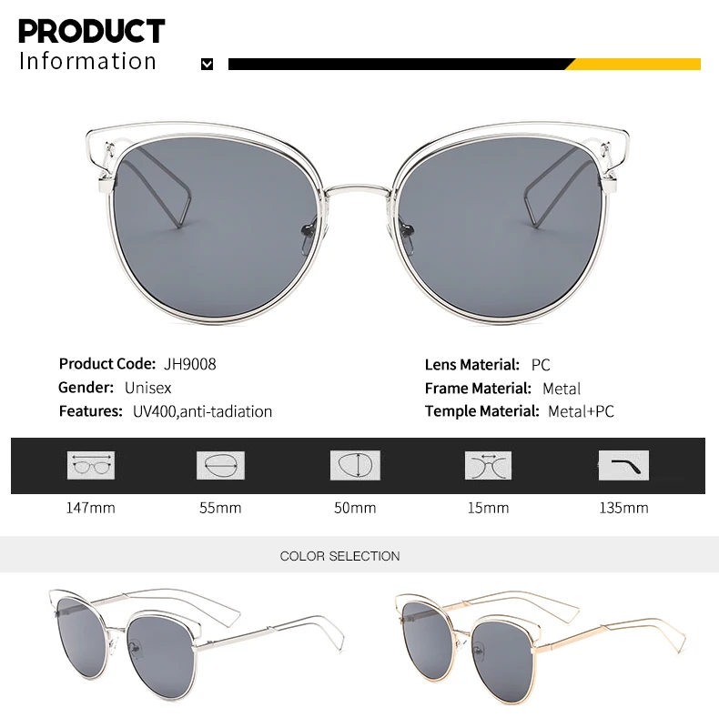 SUPERTREE Sunglasses Women Men Metal Cat Eye Full Frame Fashion Shades Oculos Gafas de sol JH9008
