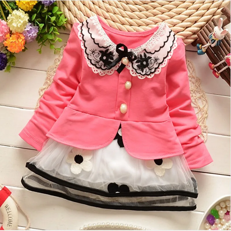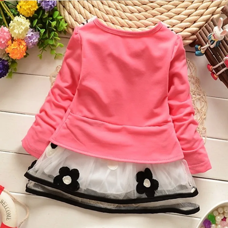 Suton Girls Dress 2018 New Autumn Lace Girls Clothes Pink Applique Princess Dress Children Spring Clothes Baby Girls Dress