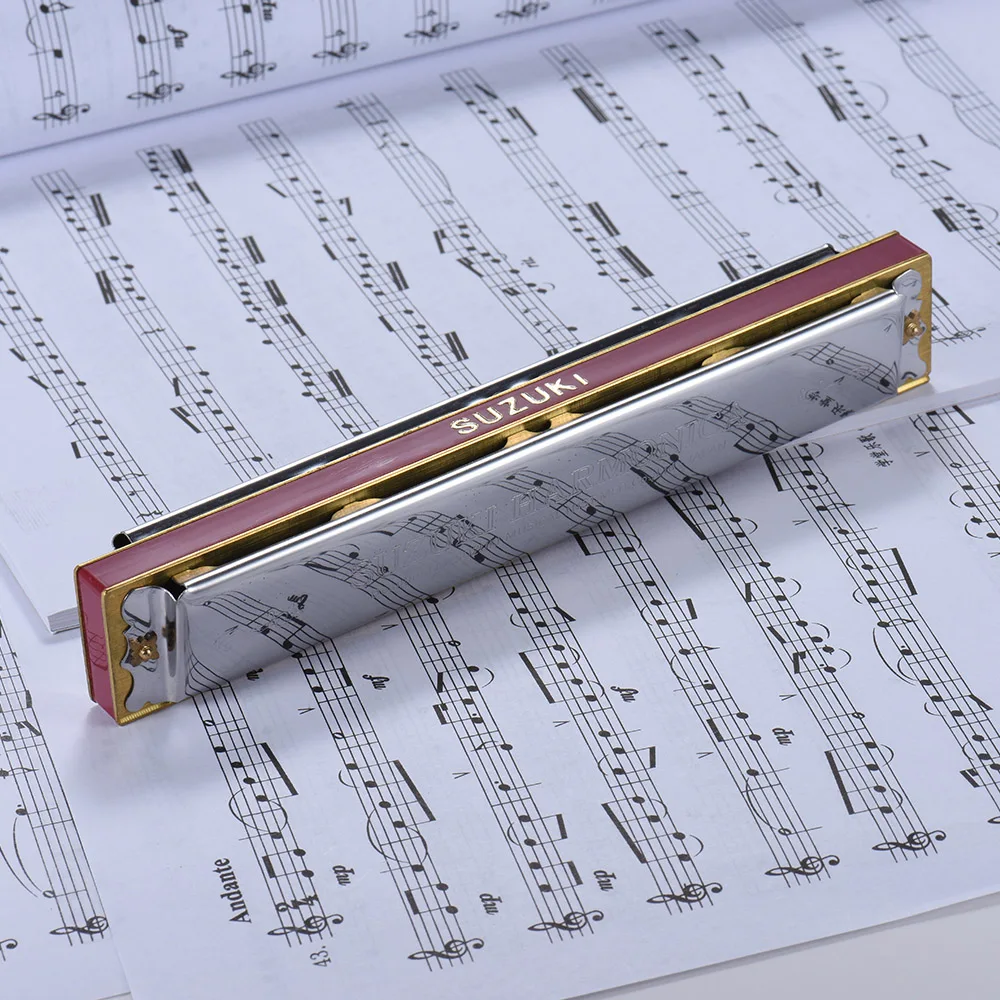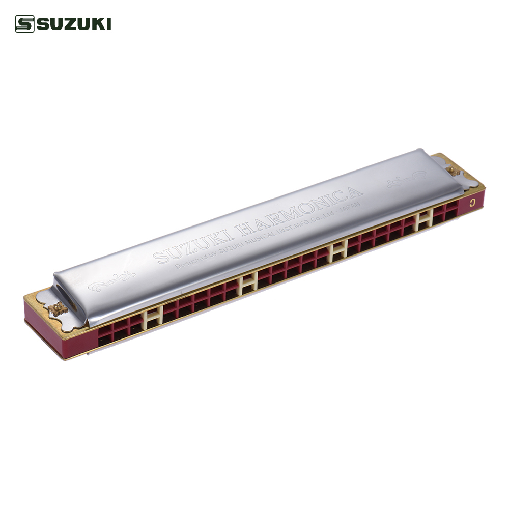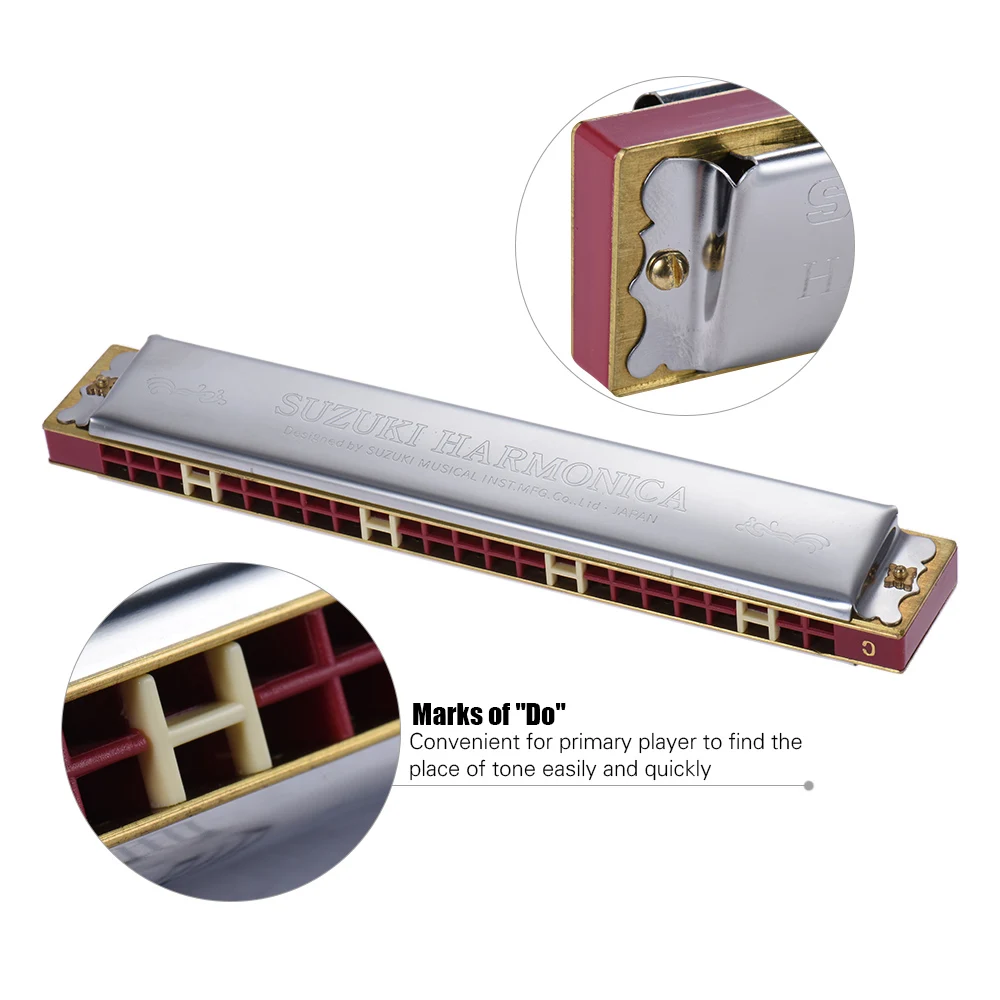 Suzuki Study-24 is high quality 24 holes, tremolo harmonica, key of C, made of harmless resin frets, it features thicken spring, compact and durable stain steel cover plate, beautiful tone and compact construction, marks of “DO” with white color, considerate design for beginner and musical lovers.