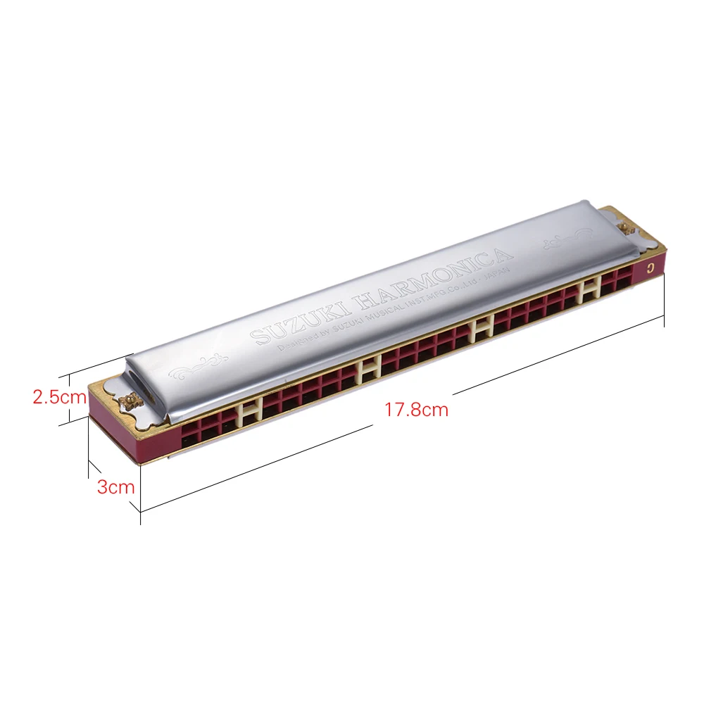 Suzuki Study-24 24 Holes Harmonica Tremolo Key of C with Cleaning Cloth Box Musical Instrument for Beginner Student