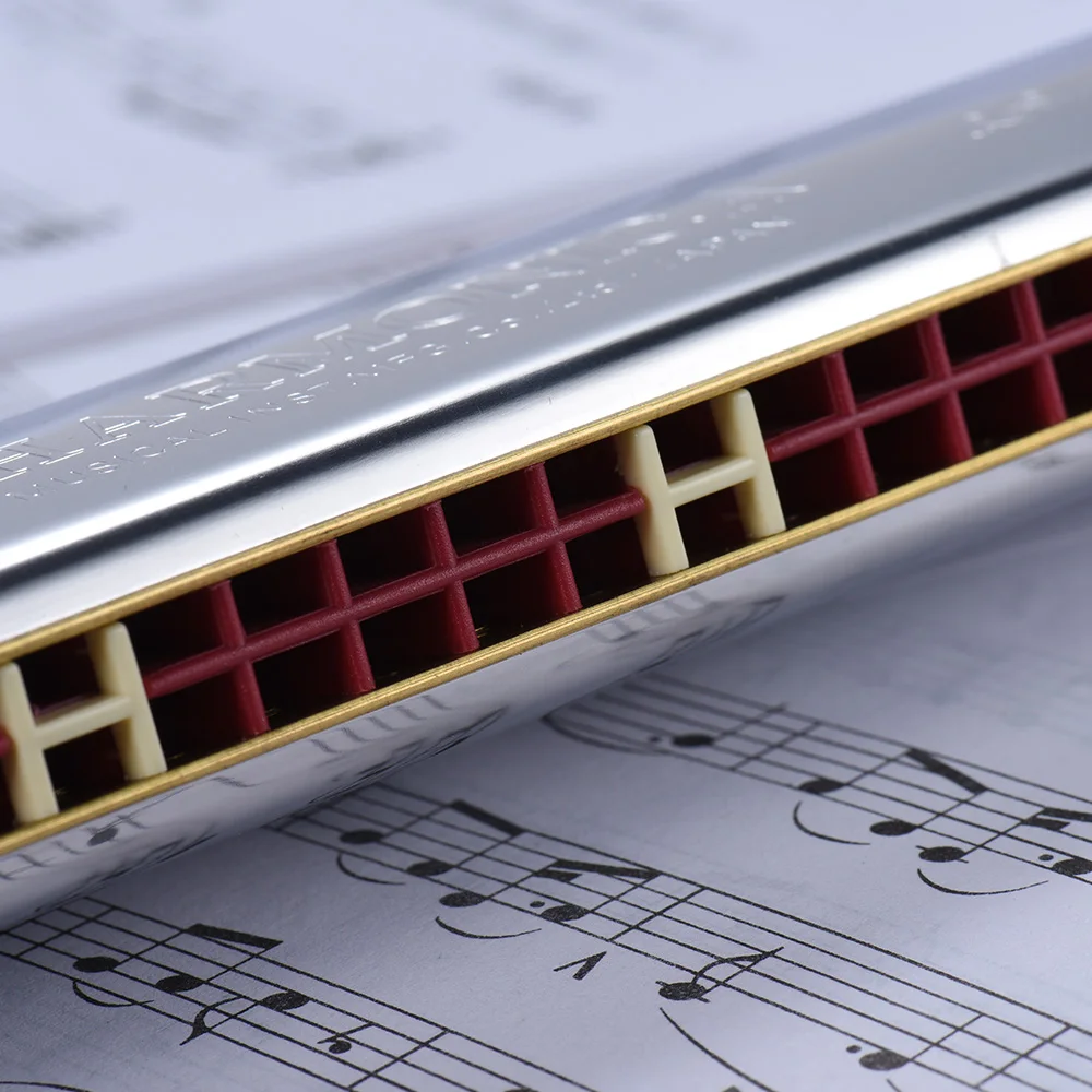 Gorgeous 24 holes tremolo harmonica, key of C, delivers melodious and bright sound.