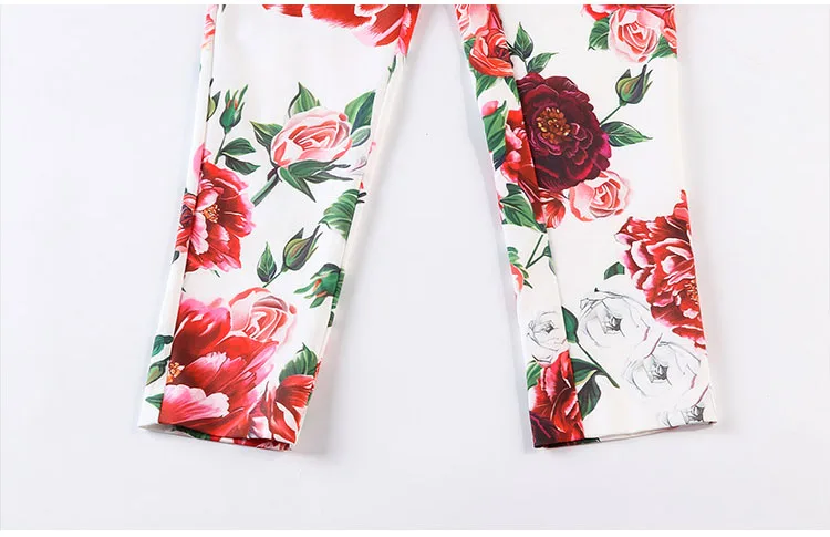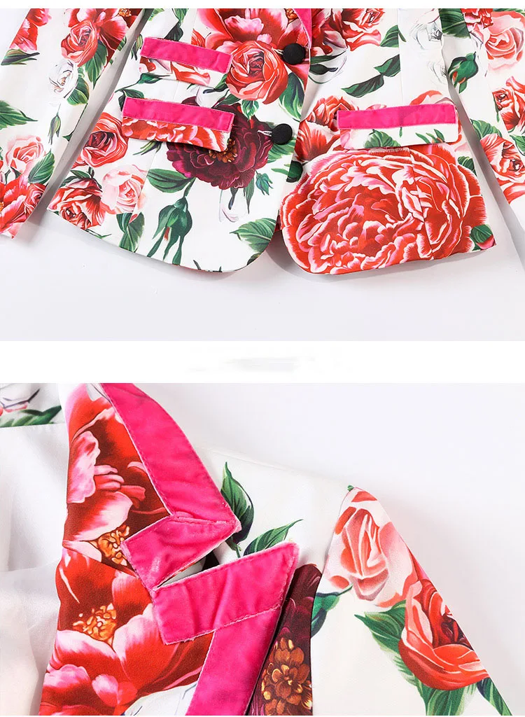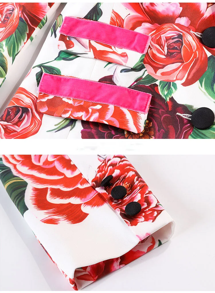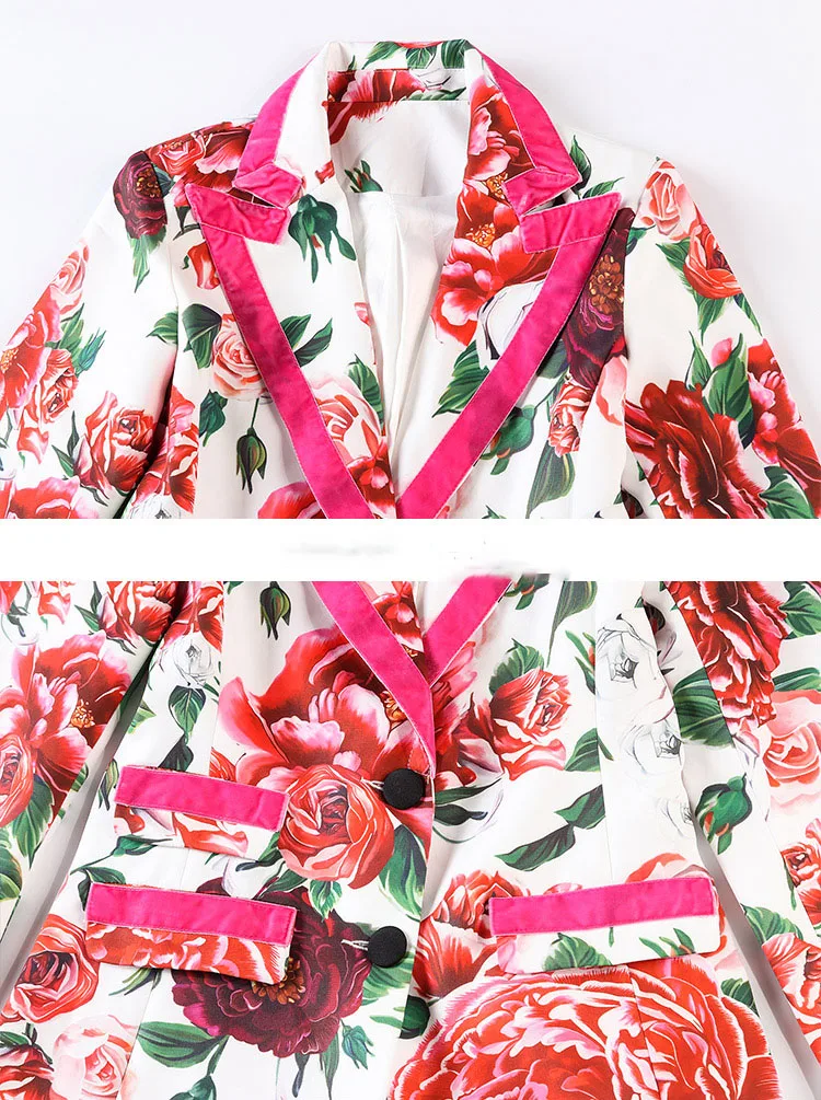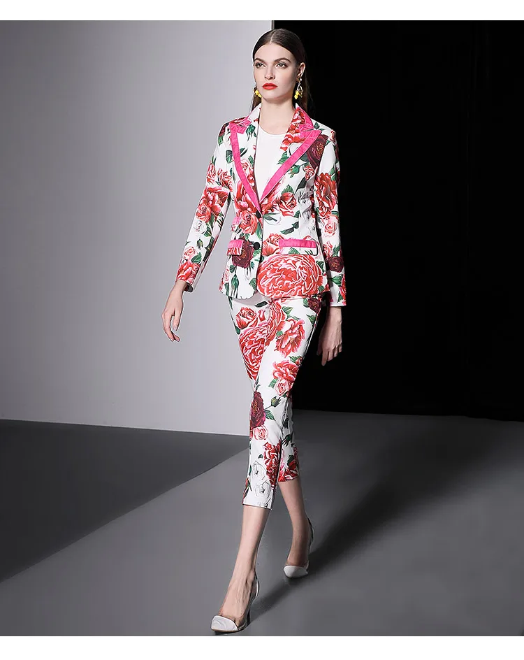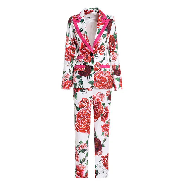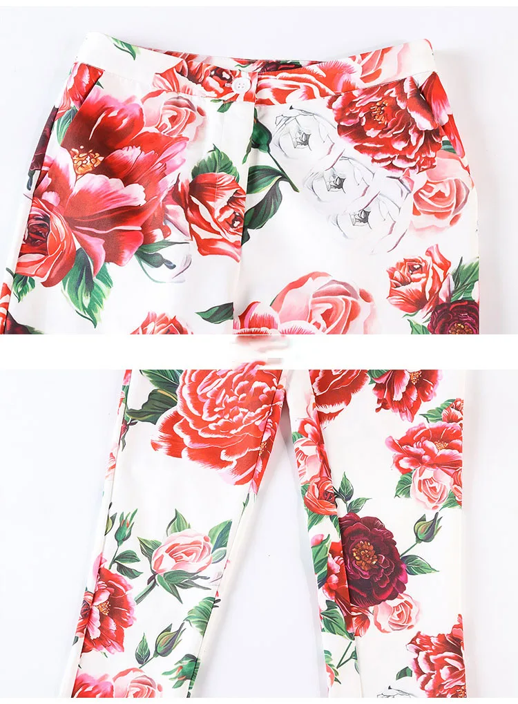 Svoryxiu 2018 Autumn Winter Runway Two Piece Set Women’s High Quality Peony Flower Printed Elegant Slim Blazers Pants Set