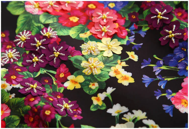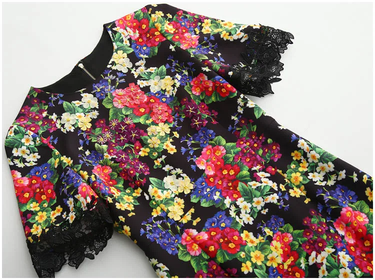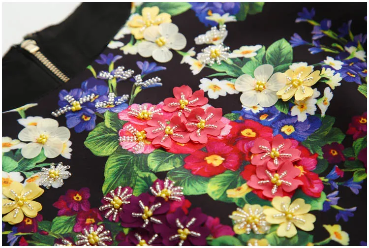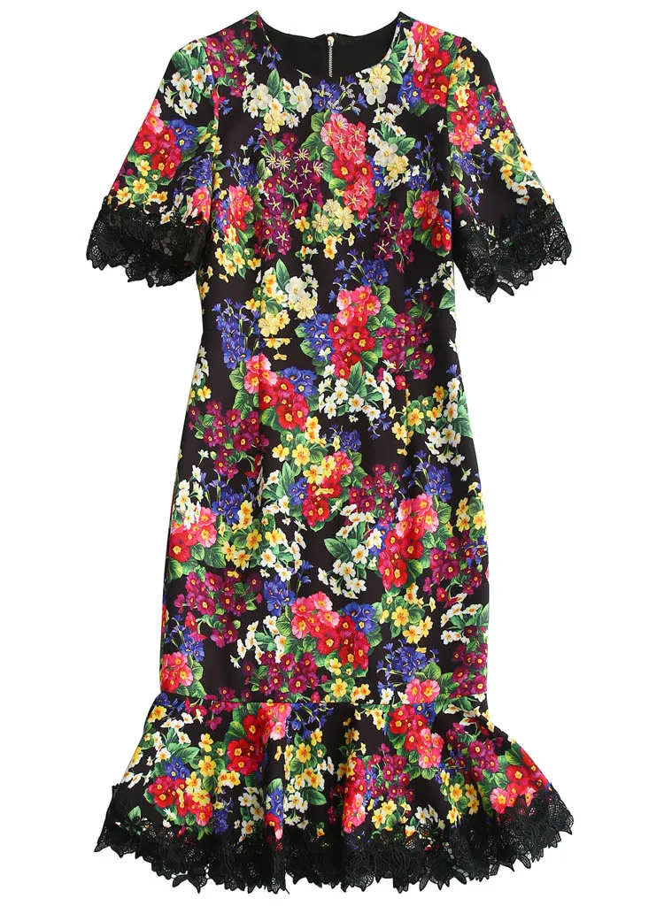 Svoryxiu Runway Autumn Package Buttocks Mermaid Dress Women’s Beading Appliques Floral Print Patchwork Black Lace Midi Dress