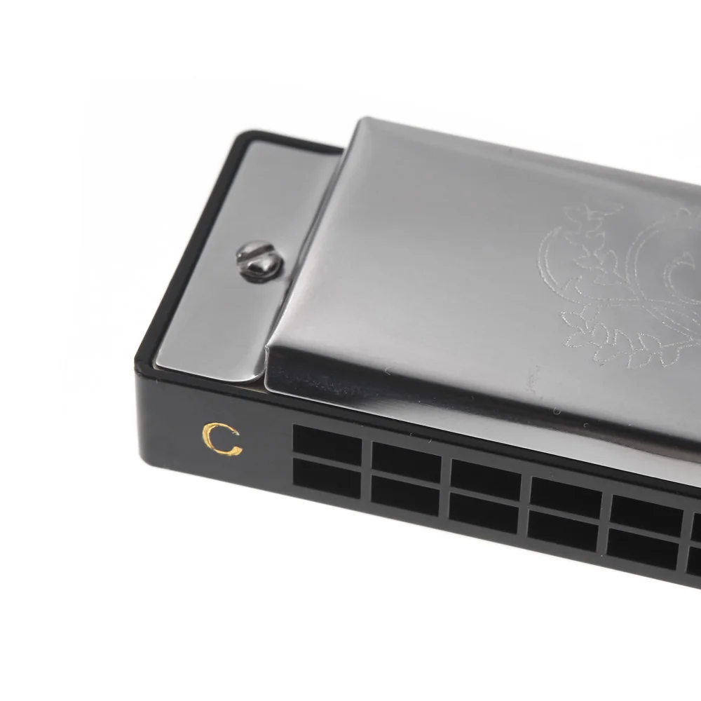 Tremolo harmonica with 24 holes and 48 reeds.