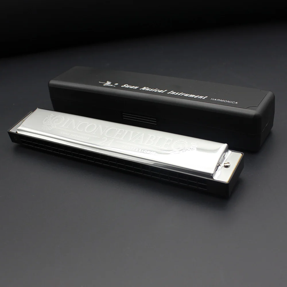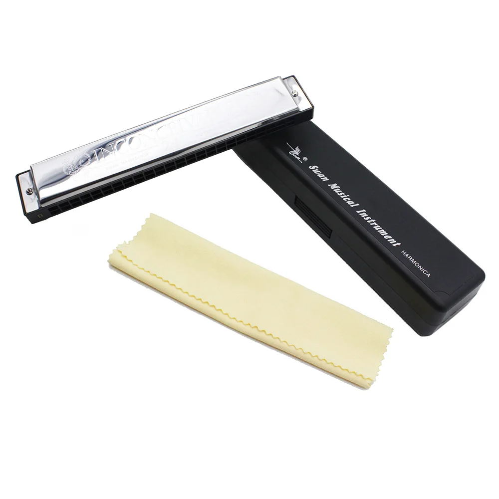 SWAN New Key of G 24 Double Holes Mouth Organ Tremolo Harmonica with 48 Reeds Free Reed Wind Instrument with Case Cleaning Cloth