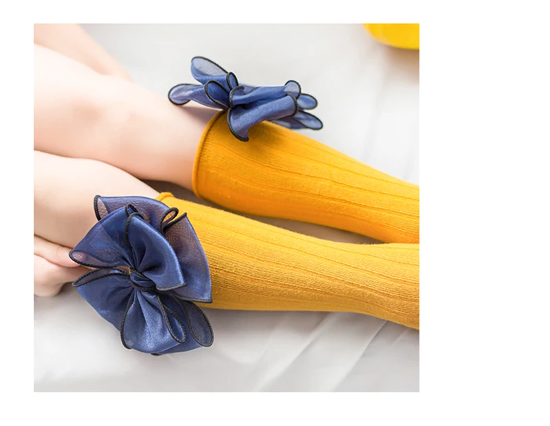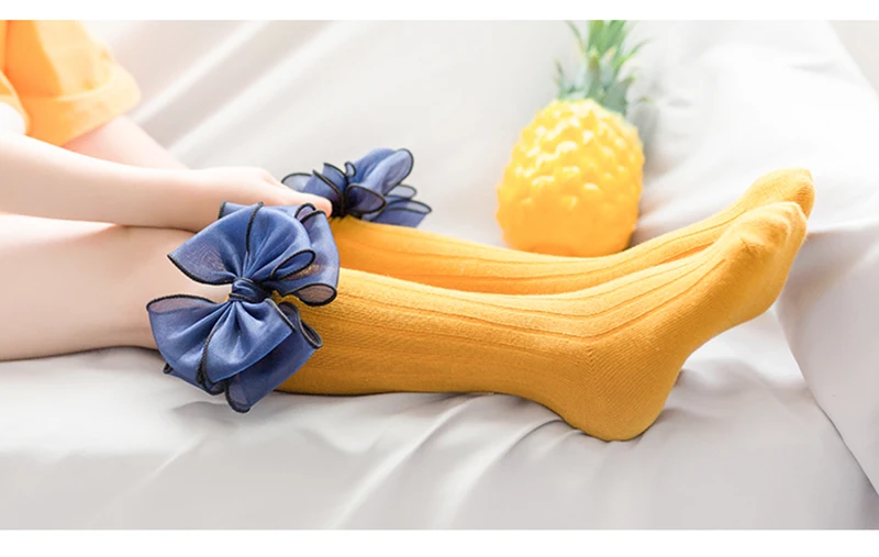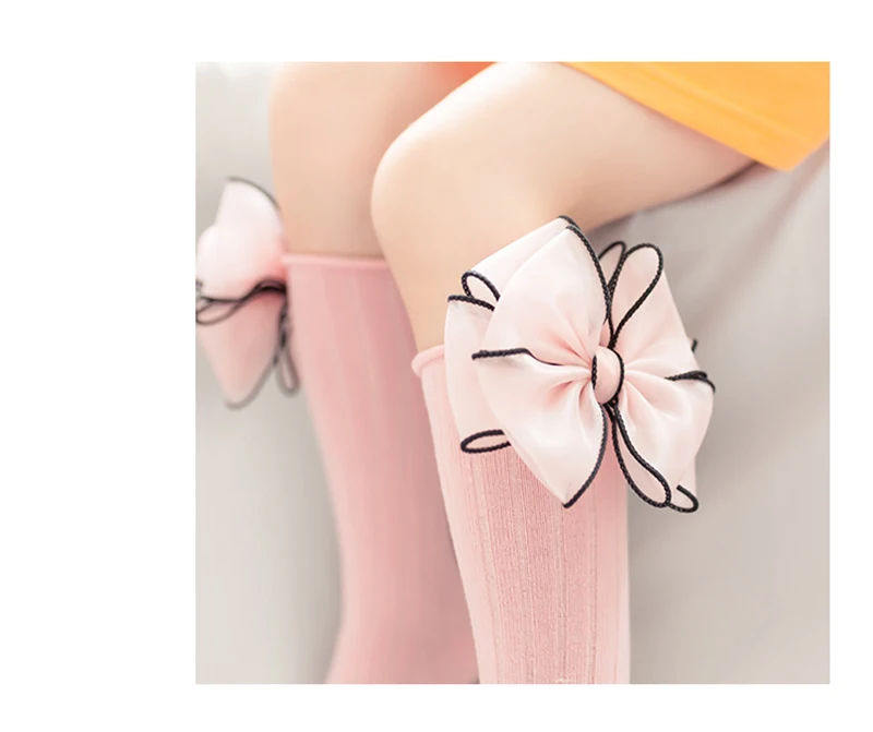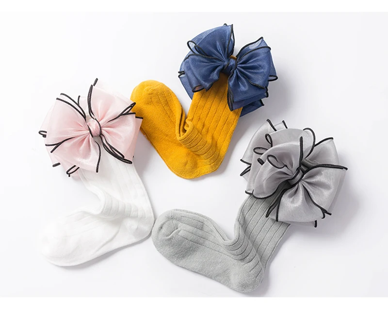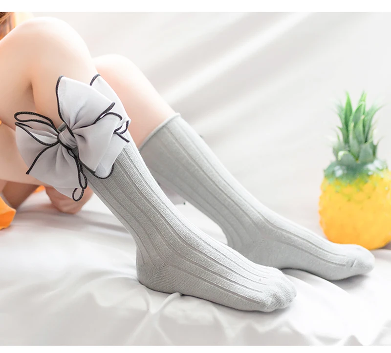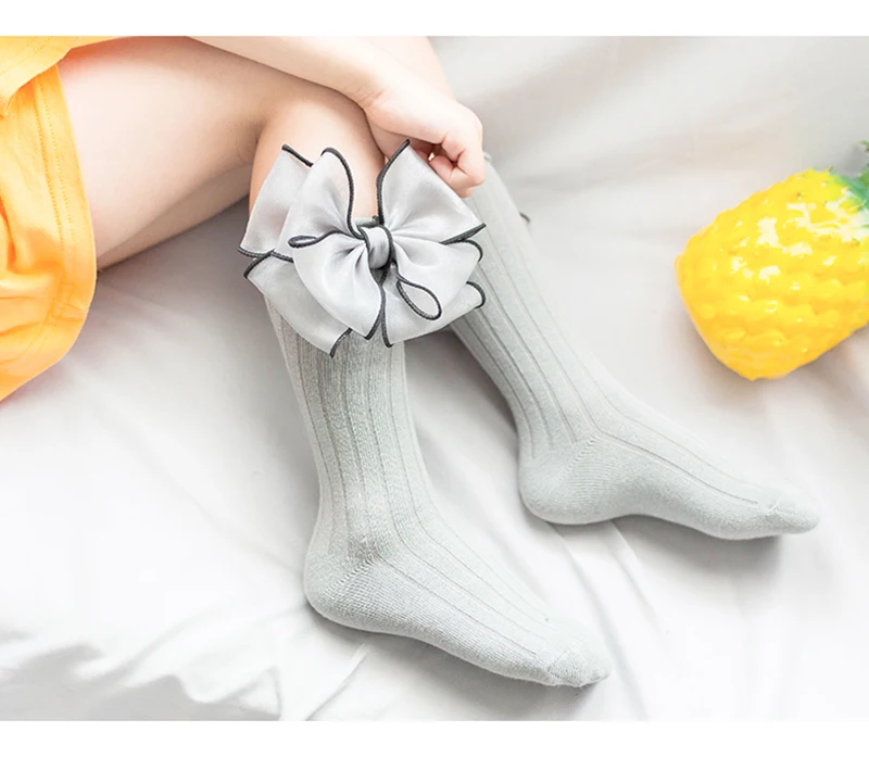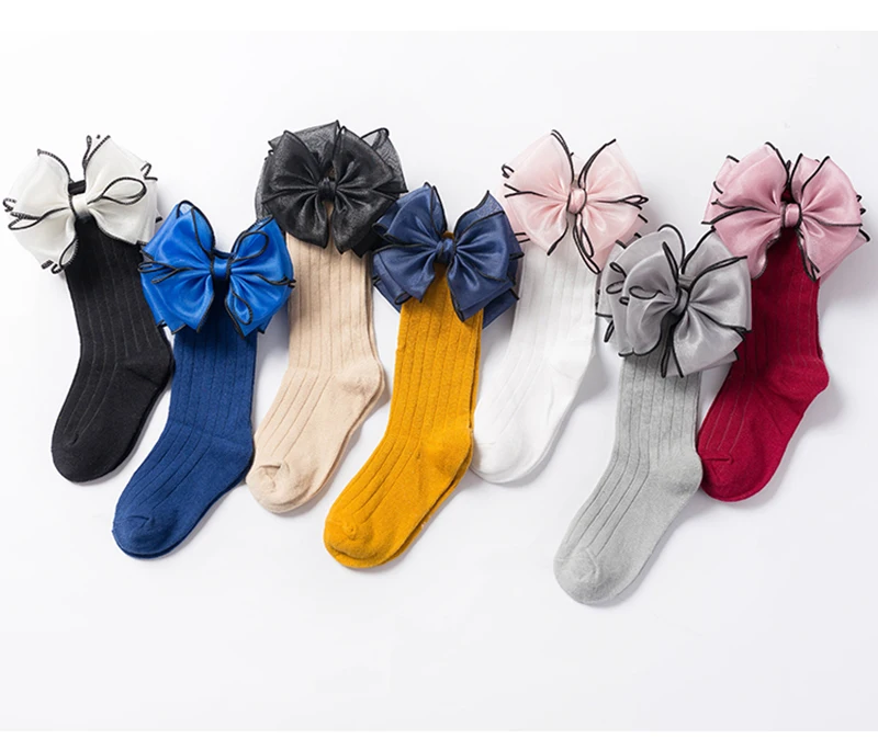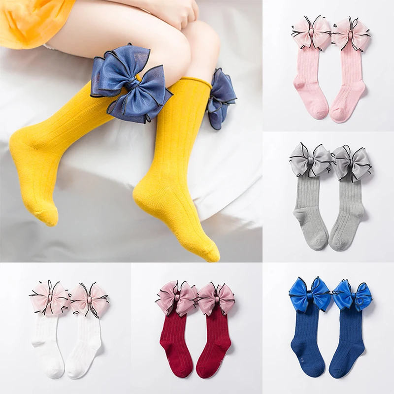 Sweet Children Socks With Bows Baby Girls Sock Knee High Cotton Baby Long Socks For Kids Socken Candy Color Newborn Infant Sock