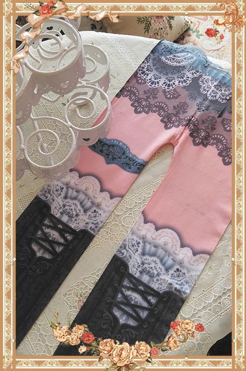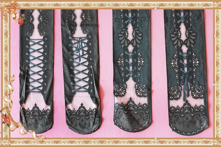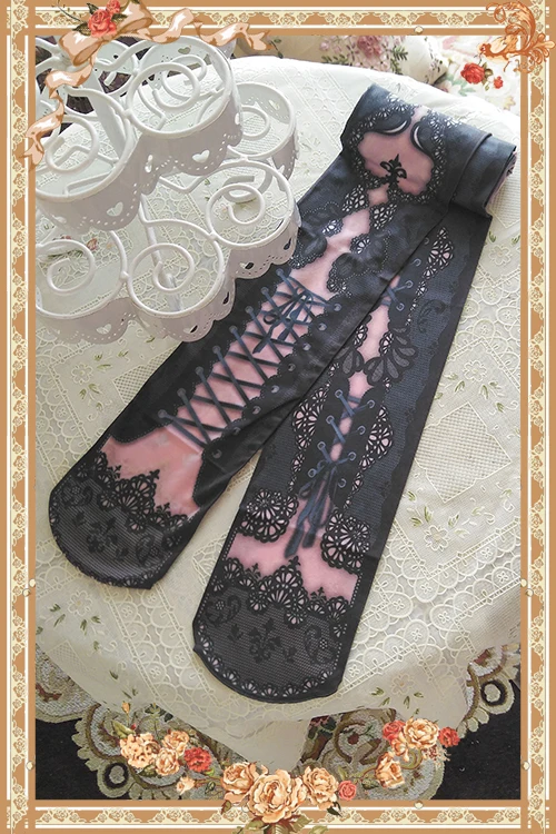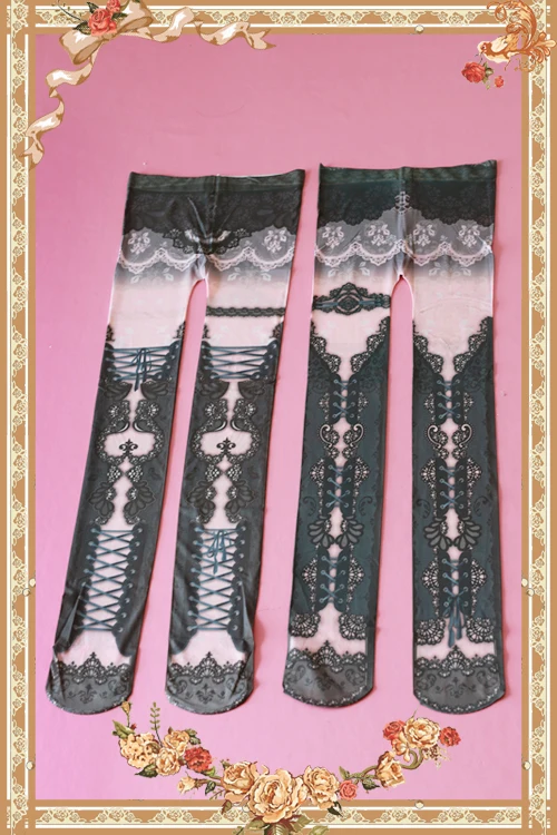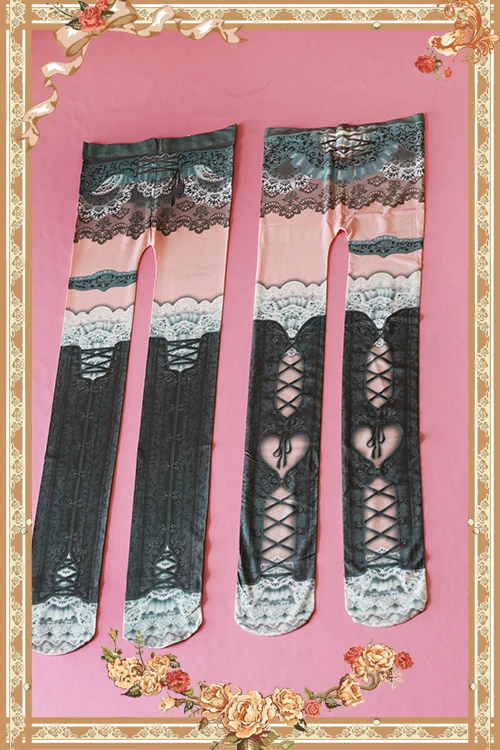 Sweet Lolita Pantyhose Victoria Corset Printed Tights Sexy Lace Design Gothic Vintage Pantyhose