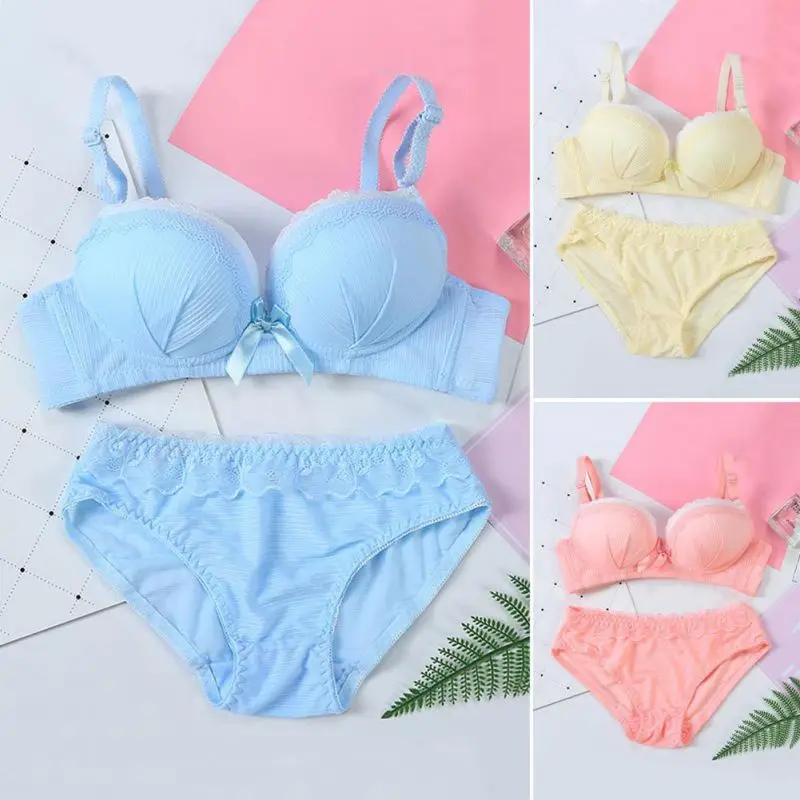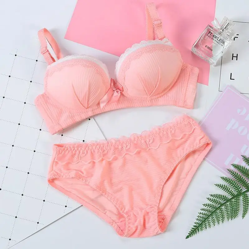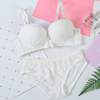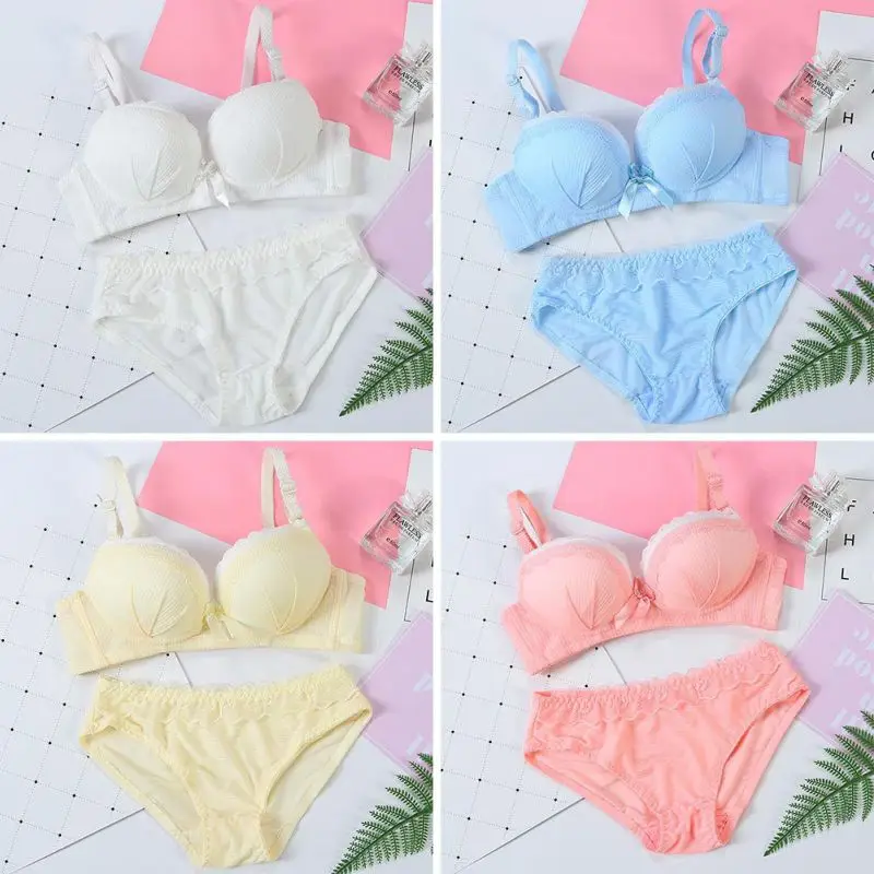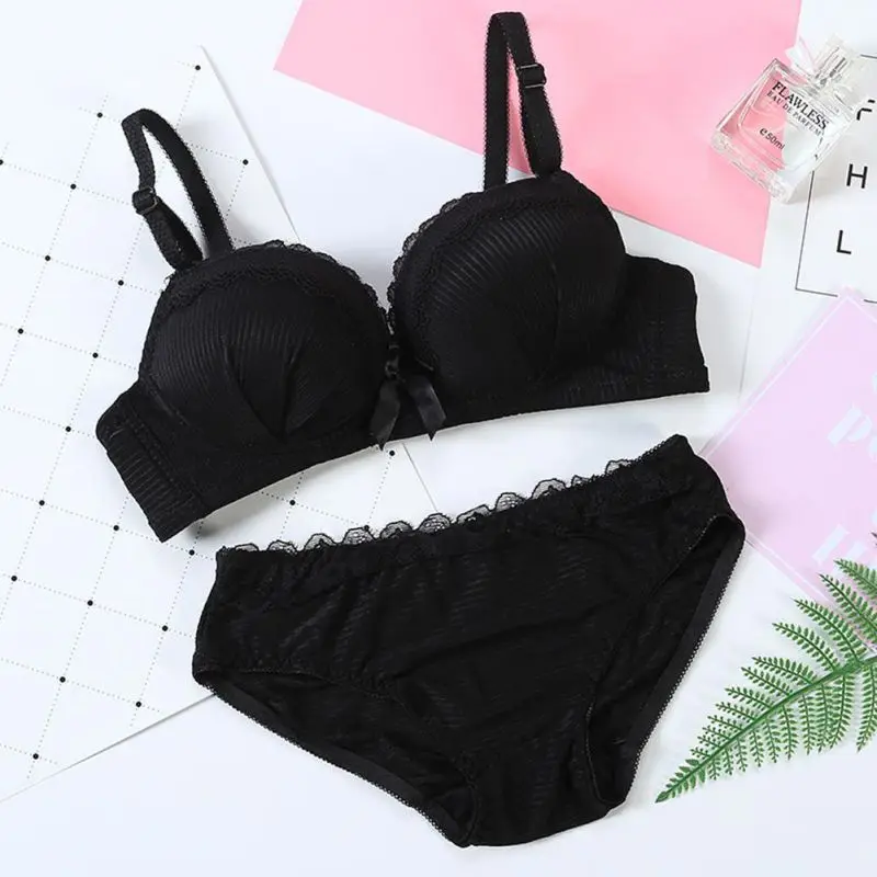 Sweet Style Lace Thin Lingerie Full Up Bra Set Vintage Solid Bra Brief Set For Schoolgirl Sexy Women Underwear Set
