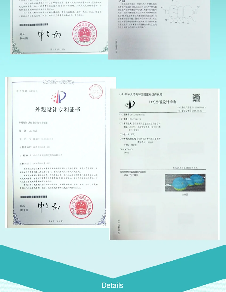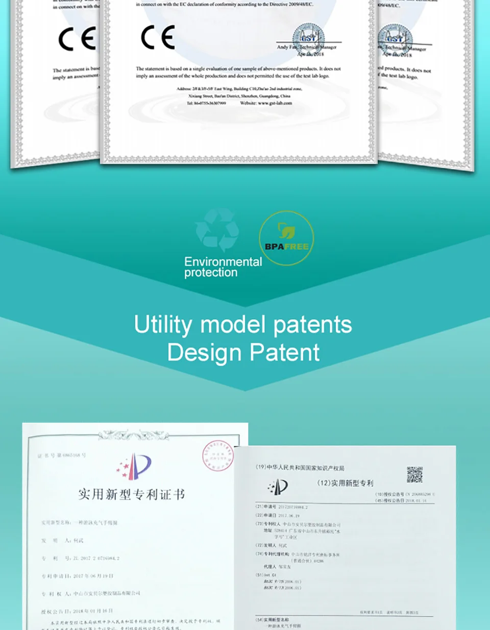 Advantages:Complete brand ASTM,SGS,EN71,CE certification, two-layer airbags are safe and reliable