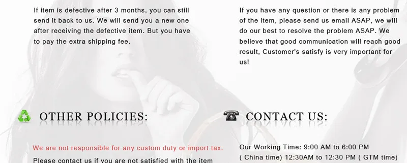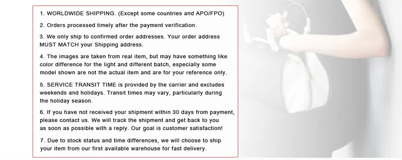 We are not responsible for any custom fees once the items have shipped. By purchasing our products, you consent that one or more packages may be shipped to you and may get custom fees when they arrive in your country.