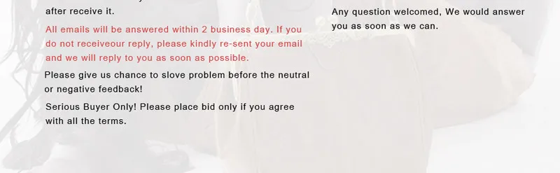 • If you did not receive the product within the guaranteed time( 45 days not including 2-5 day processing) you can request a refund or a reshipment.