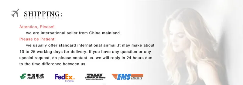 Packages from our warehouse in China will be shipped by ePacket or EMS depending on the weight and size of the product. Packages shipped from our US warehouse are shipped through USPS.