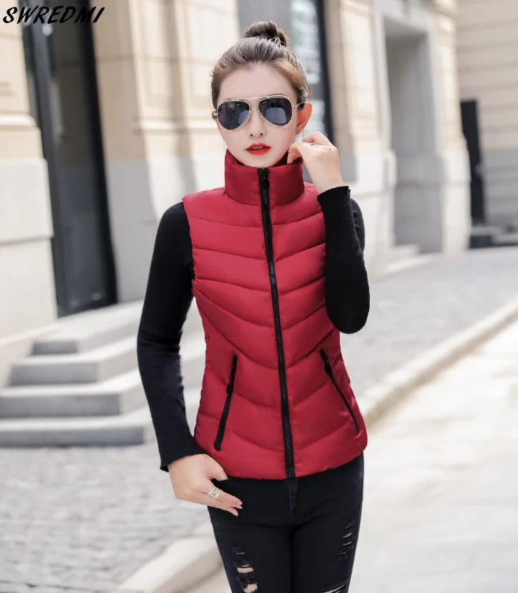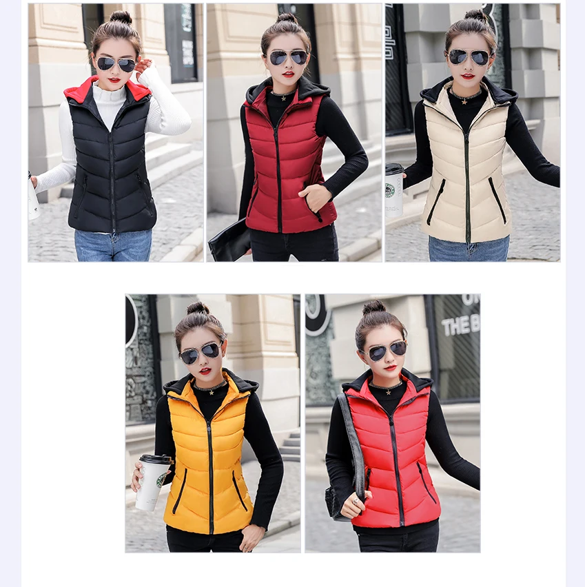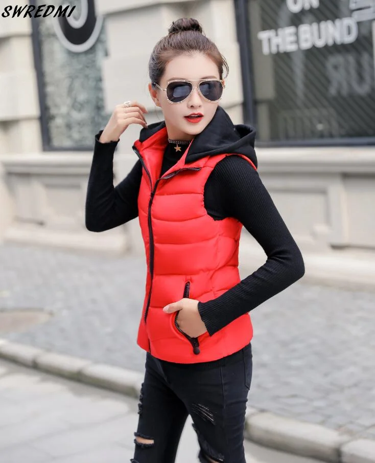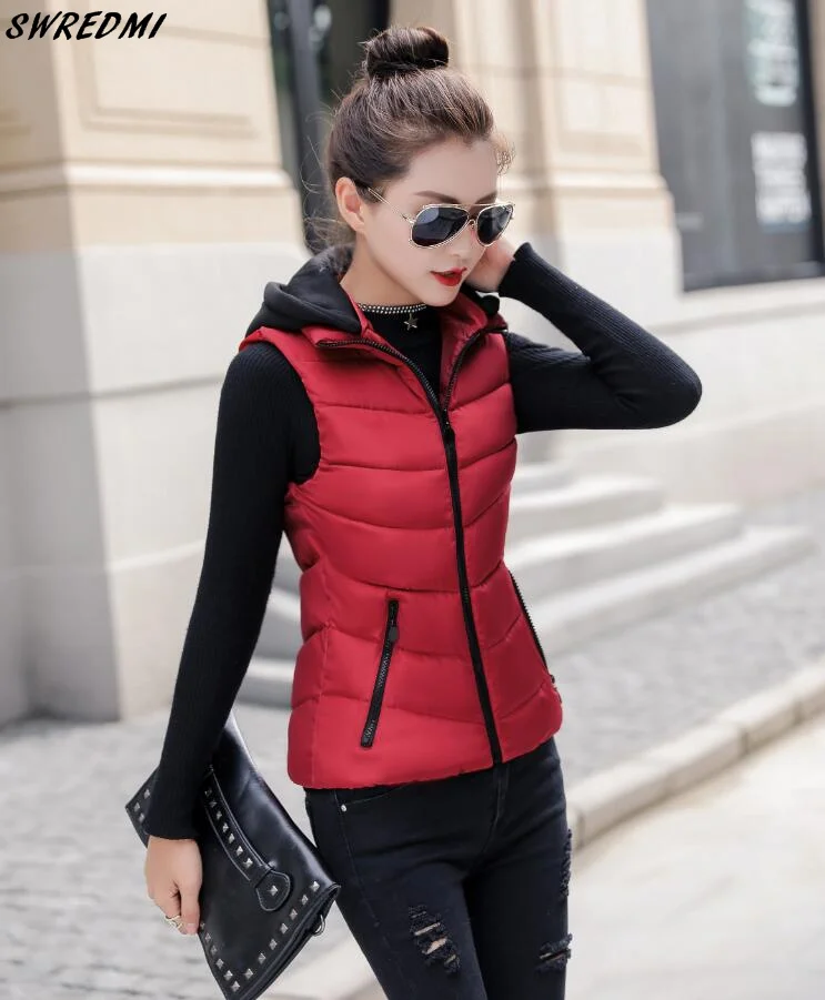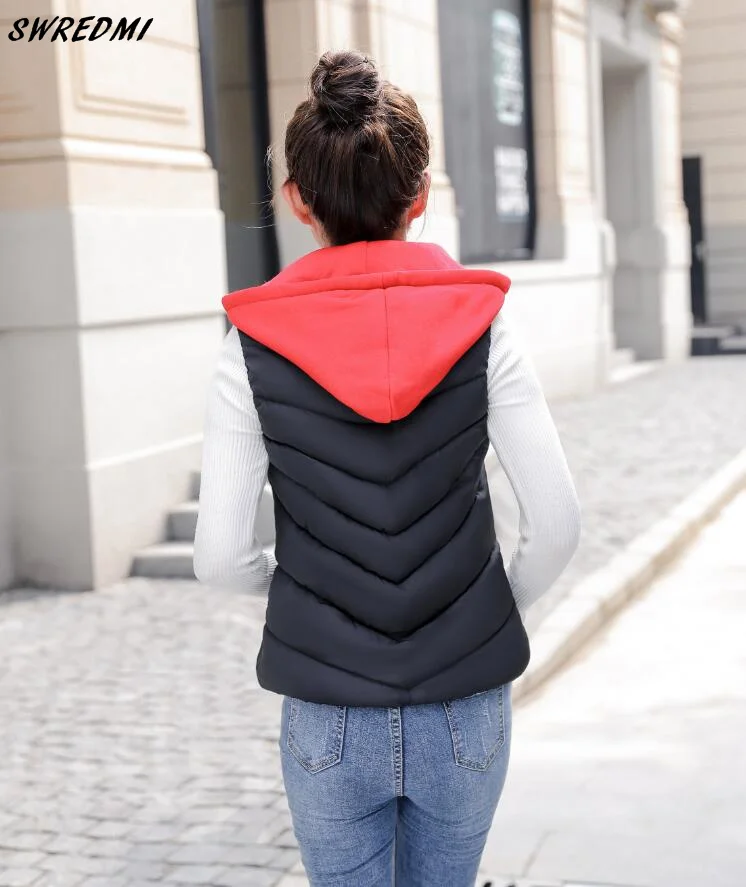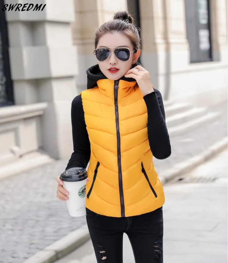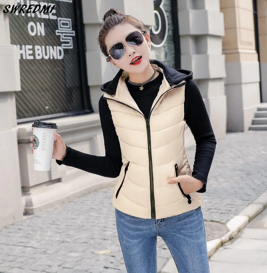 SWREDMI 2018 New Slim Casual Women Winter Vest Sleeveless Hooded Parka Down Cotton Vest Outerwear Plus Size 3XL Autumn Warm Vest