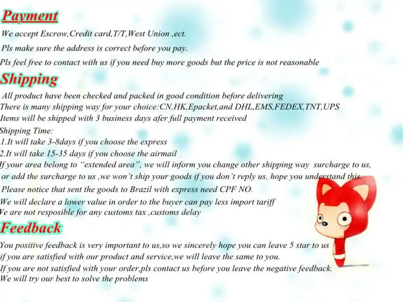 We are not responsible for any custom fees once the items have shipped. By purchasing our products, you consent that one or more packages may be shipped to you and may get custom fees when they arrive in your country.