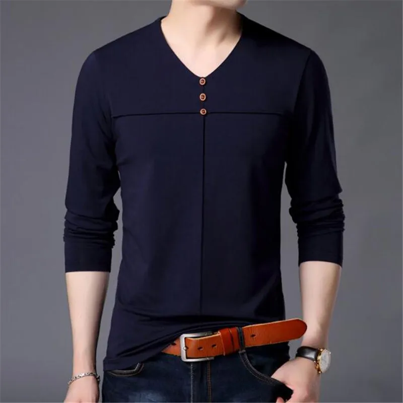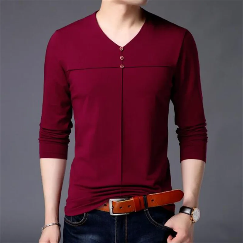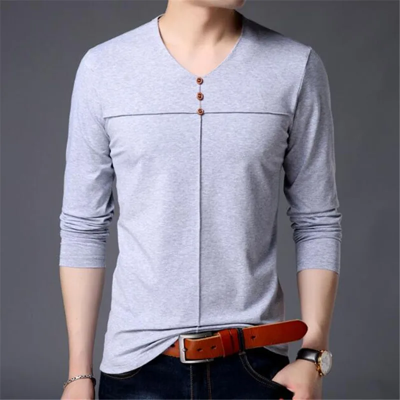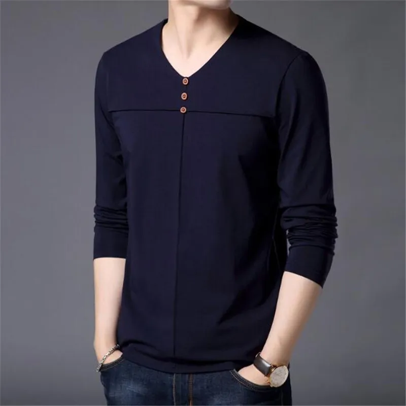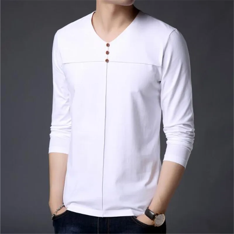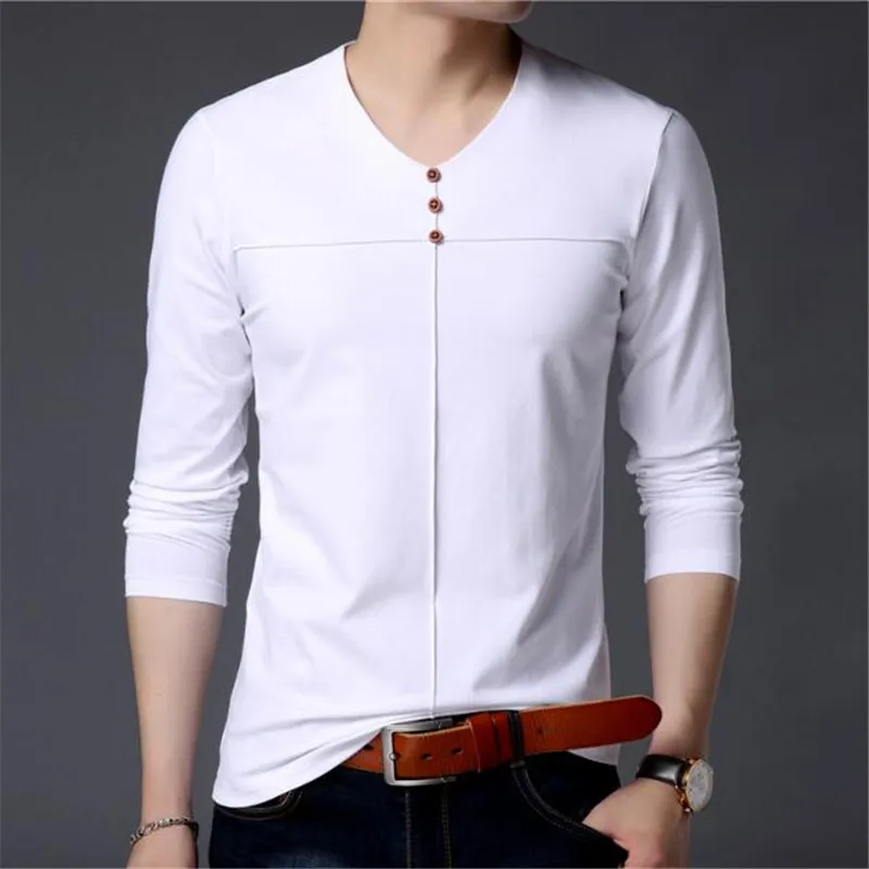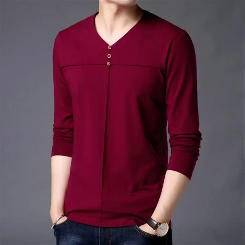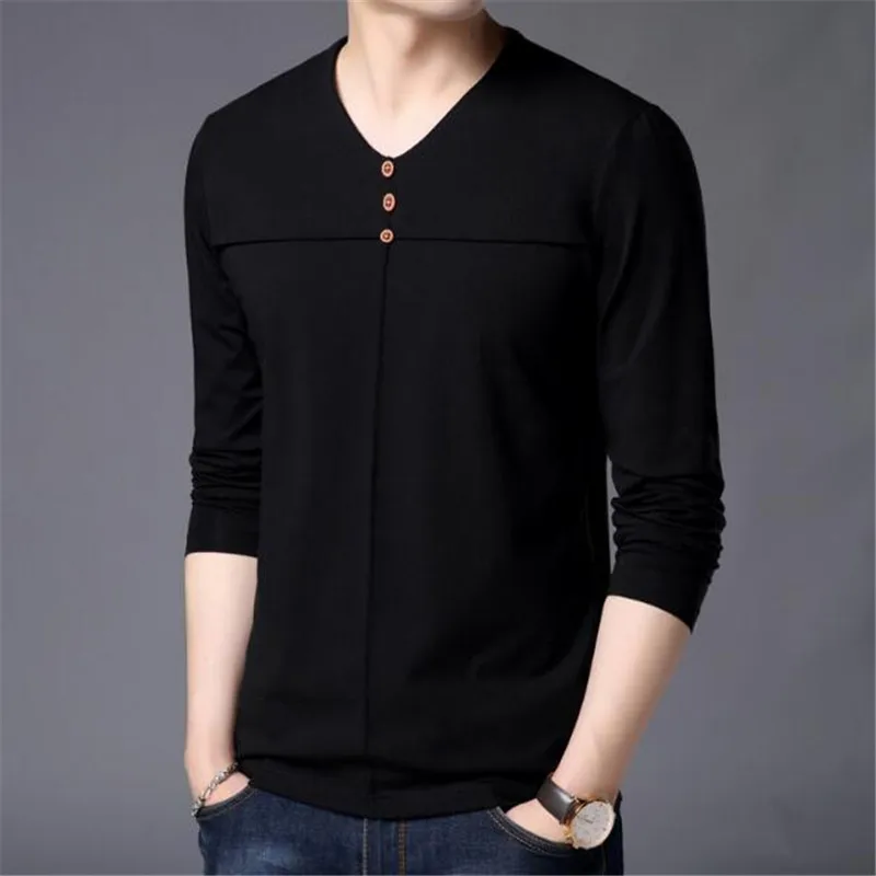 T Shirt Men Clothes 2018 Autumn New Arrival Long Sleeve T-Shirt Men Cotton Tee Shirt Homme Casual Henry Collar Top AE86