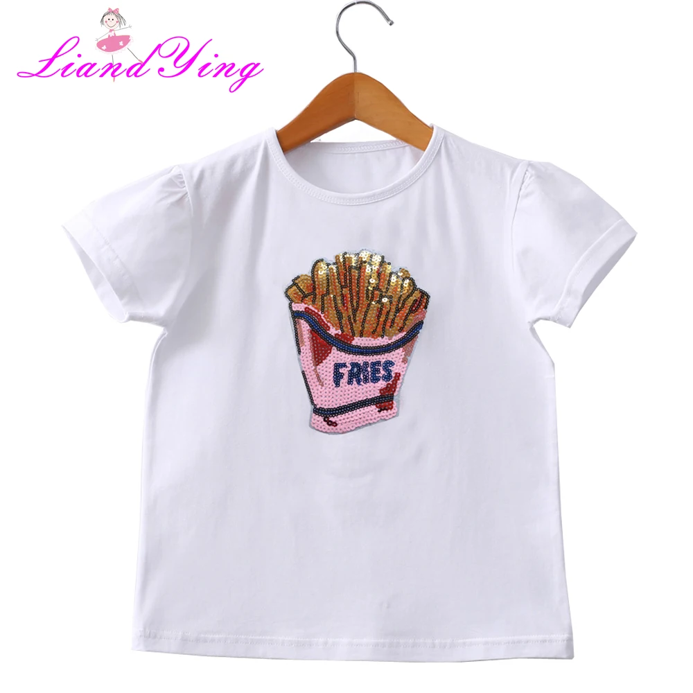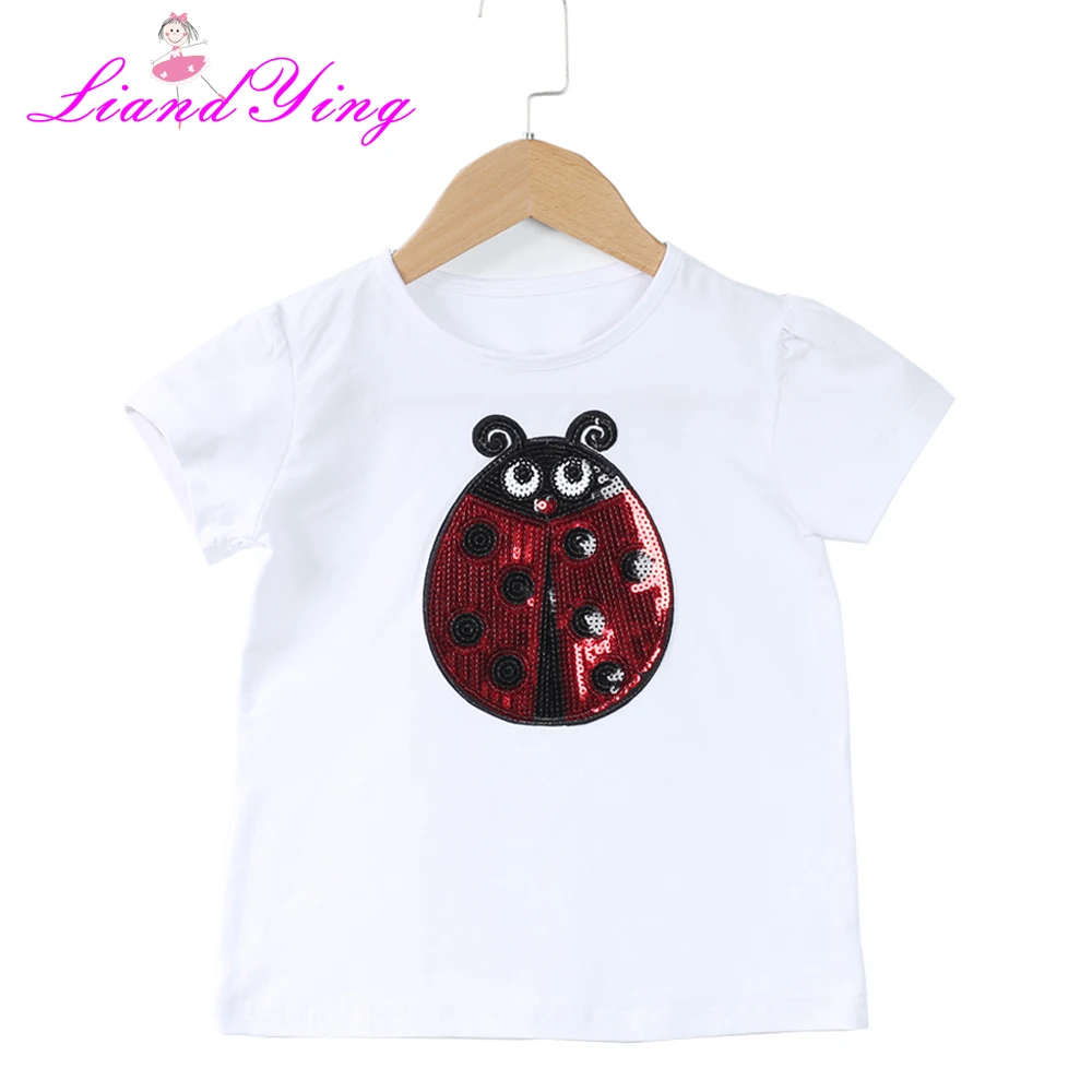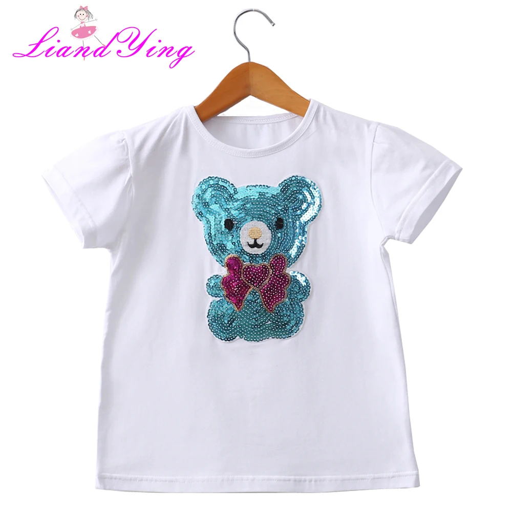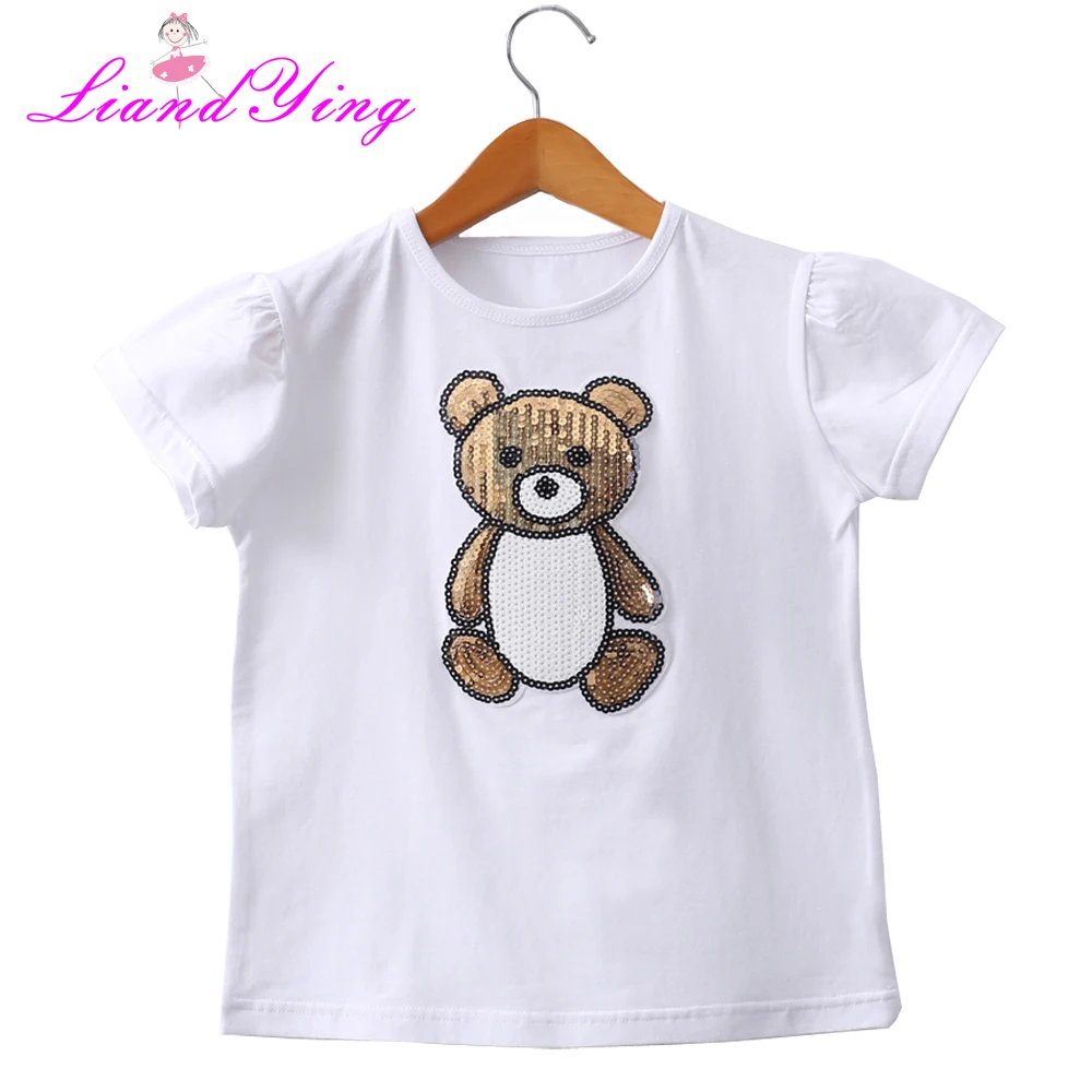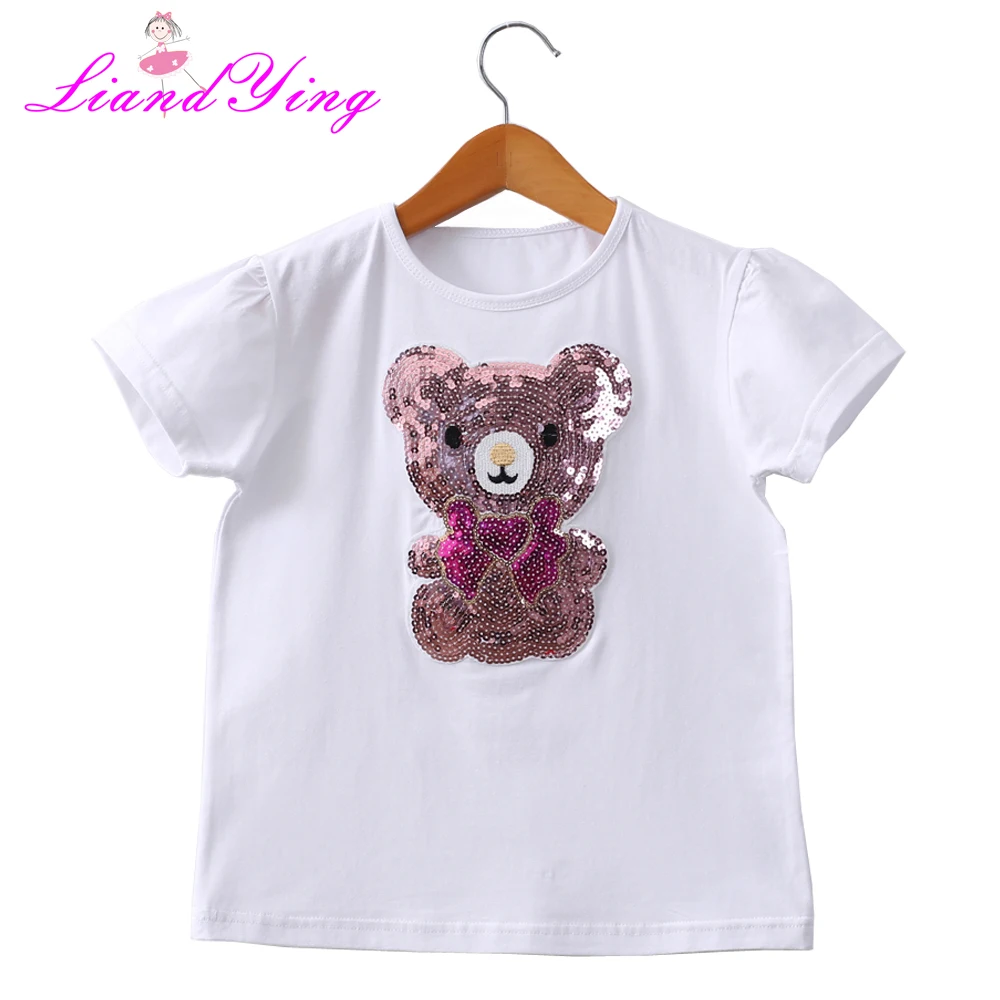 T-Shirts For Girls Sequins T Shirt Girls Cartoon Bear Kids Tshirt Summer Teen Clothes For Girls 2 4 6 8 10 12 Year