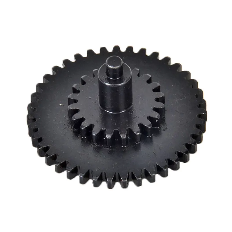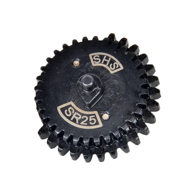 A High Torque Gear Set for the SR 25 Elongated Gearbox from SHS. These gears are CNC machined from Steel, SHS gears are extremely popular for a reason and chances are you have heard of these gears before. The teeth on these gears are cut flat at the top so you do not have a weak point on the top of the teeth. SHS is known for building high quality products and keeping cost low and this SHS gear set is no exception. These gears are torque gears, but not ultra high torque-which will delay trigger response. Features a ball bearing tappet plate knob.