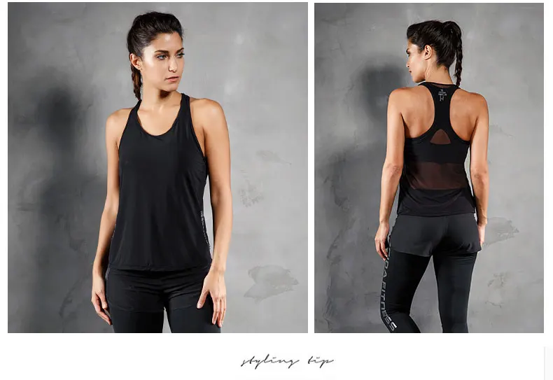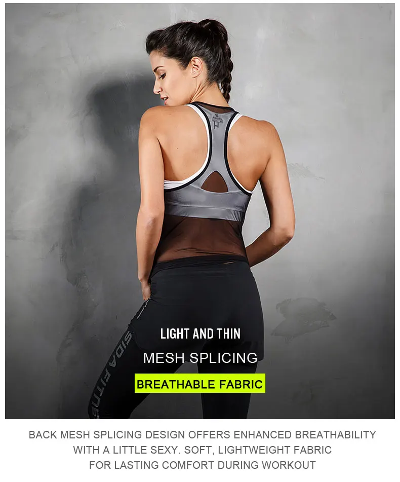 Tank Top Women Fitness Running Mesh Racerback Sleeveless Shirt Breathable Quick Drying Workout Yoga Sexy Sports Gym Vest Female