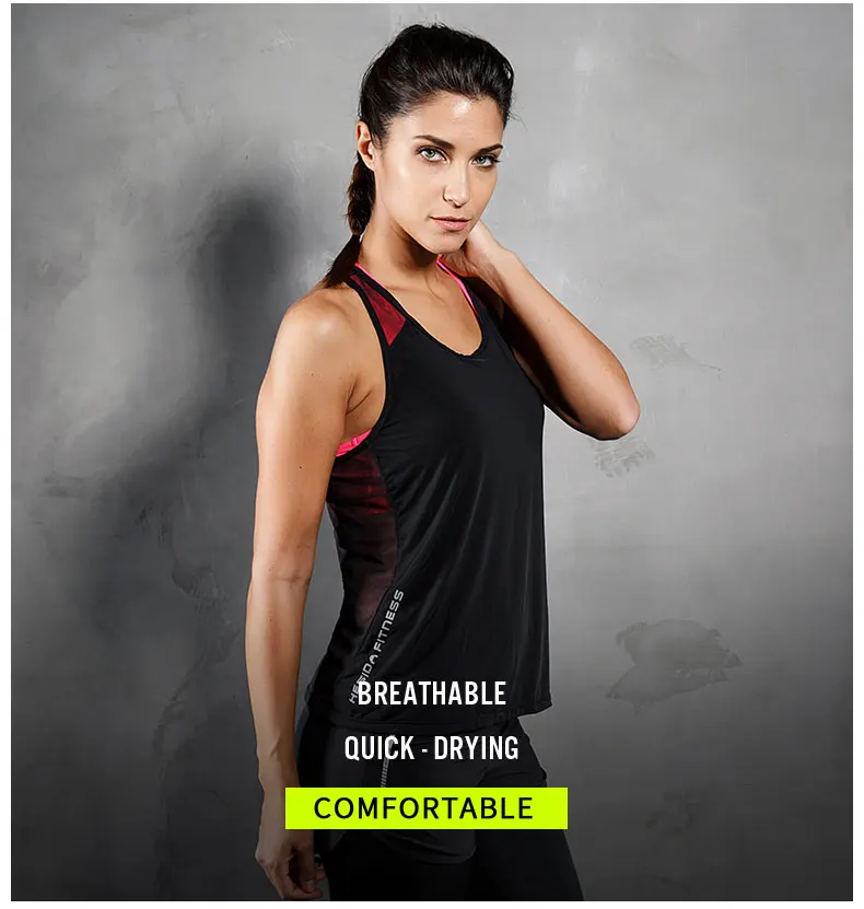 Tank Top Women Fitness Running Mesh Racerback Sleeveless Shirt Breathable Quick Drying Workout Yoga Sexy Sports Gym Vest Female