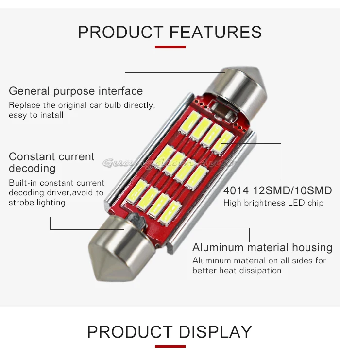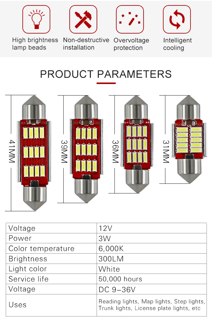 Use For:Dome Light,Reading light, License plate light ,Luggage compartment light,etc.