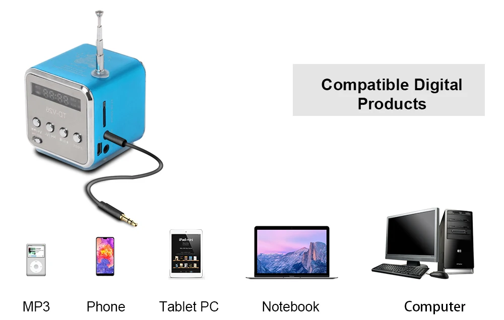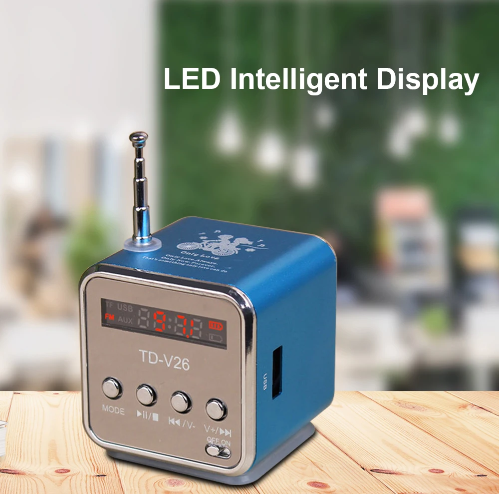 TD-V26 Mini Radio Fm Digital Portable Speakers With Am Fm Radio Receiver Support SD/TF Card For Mp3 Music Player USB Charging