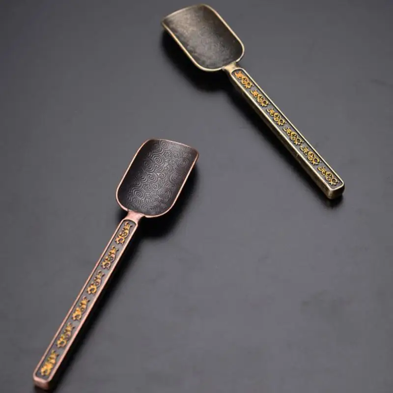 Tea Spoons Copper Tea Scoop Vintage Sugar Salt Spoon Chinese Kongfu Tea Accessories Tools Tableware