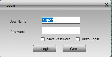 Default Username of CMS: super Password: null(empty)