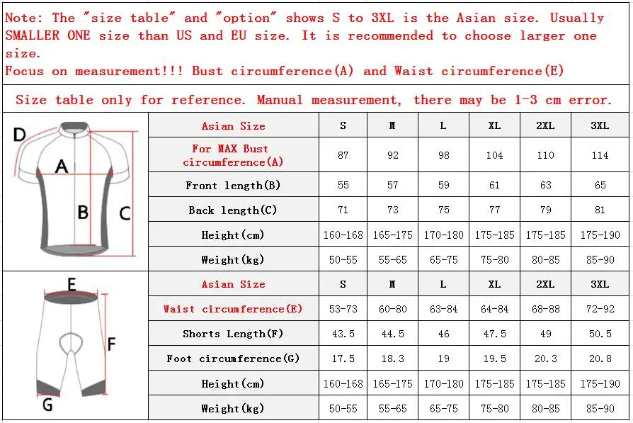 Our Cycling Jersey is Asian Size Smaller than European Size, So You Need to Choose One Much Bigger Size.