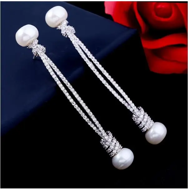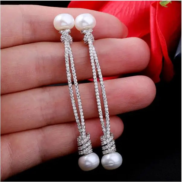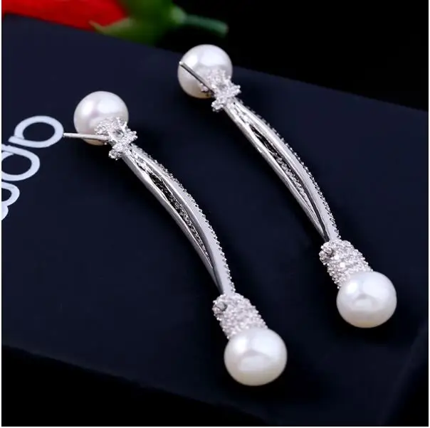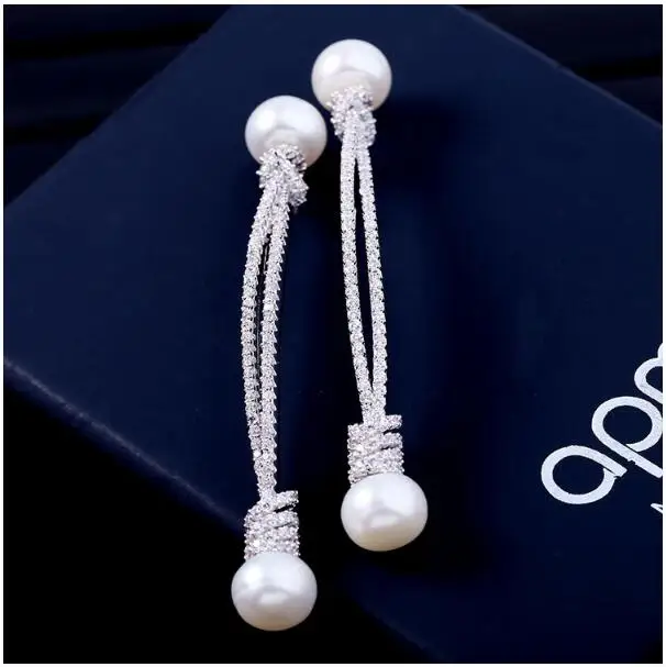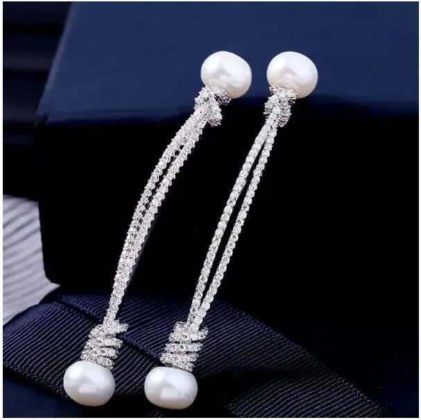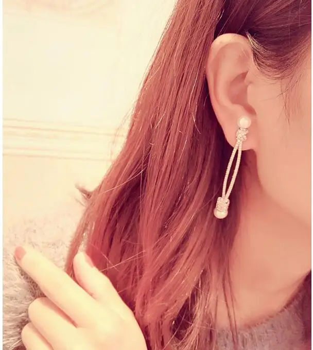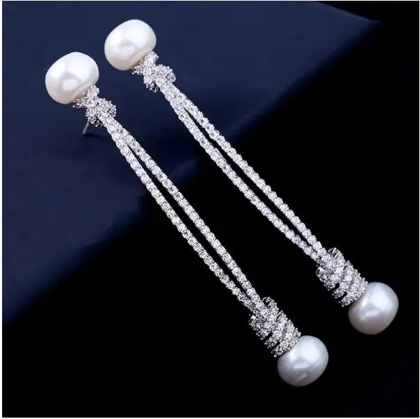Temperament female long style star with natural pearl earrings with zircon anti-allergy and accessories ear nail