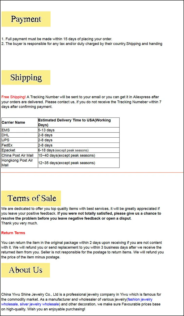 • If you did not receive the product within the guaranteed time( 45 days not including 2-5 day processing) you can request a refund or a reshipment.