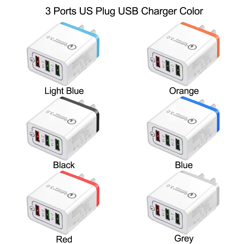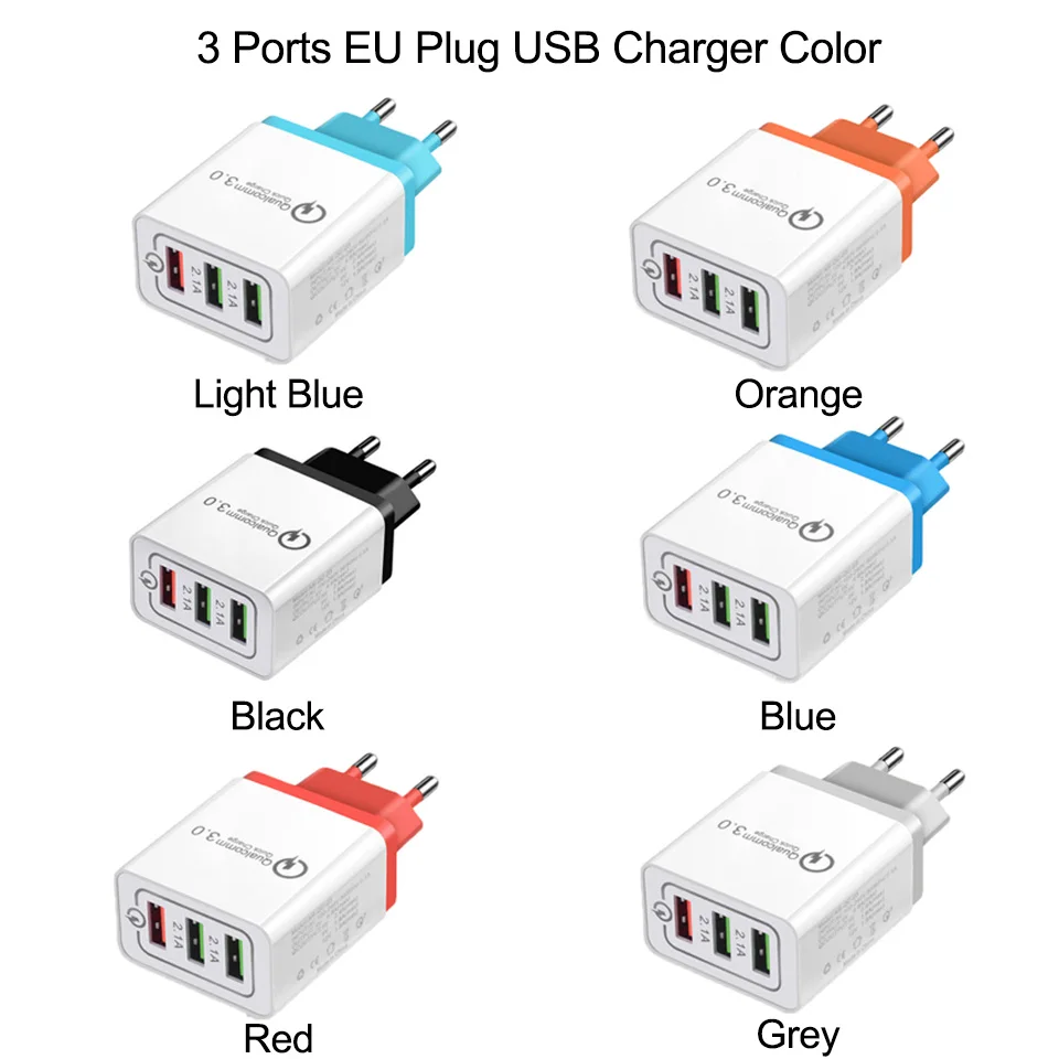Tendway Qc 3.0 Fast Usb Wall Travel Charger Quick Charge 3.0 Multi Usb Mobile Phone Charger 3 Ports EU US Portable Fast Charger