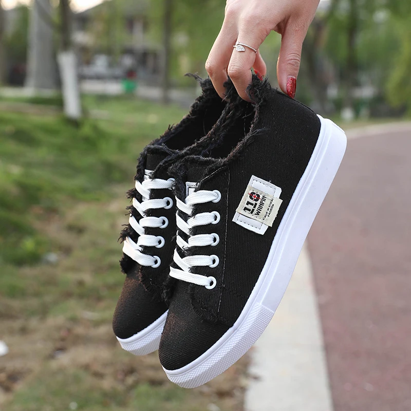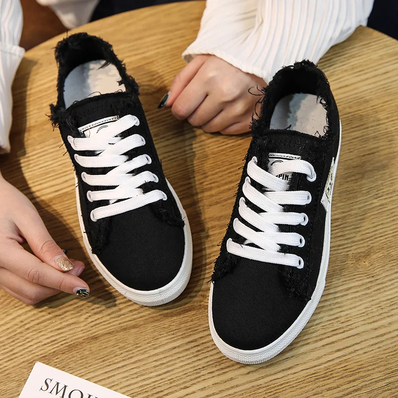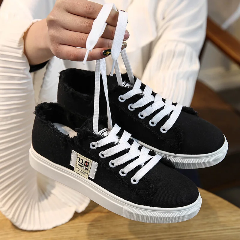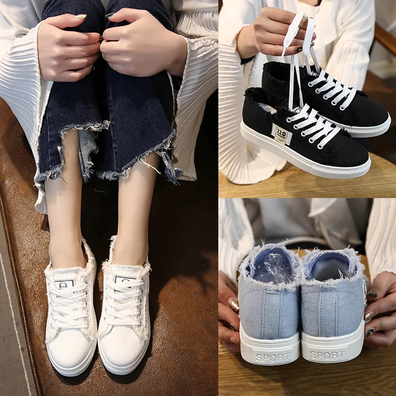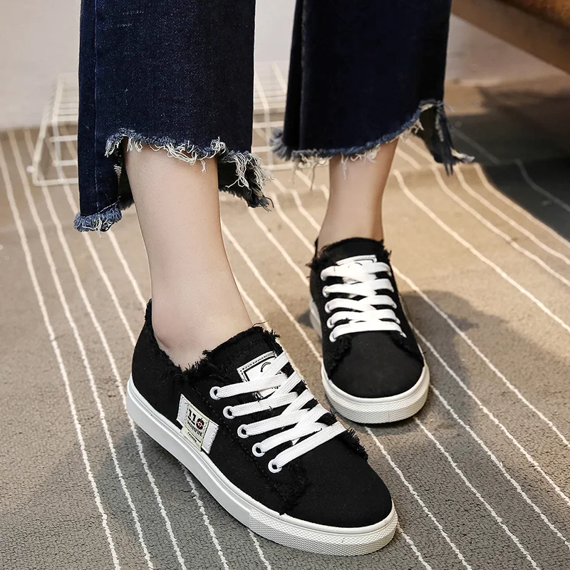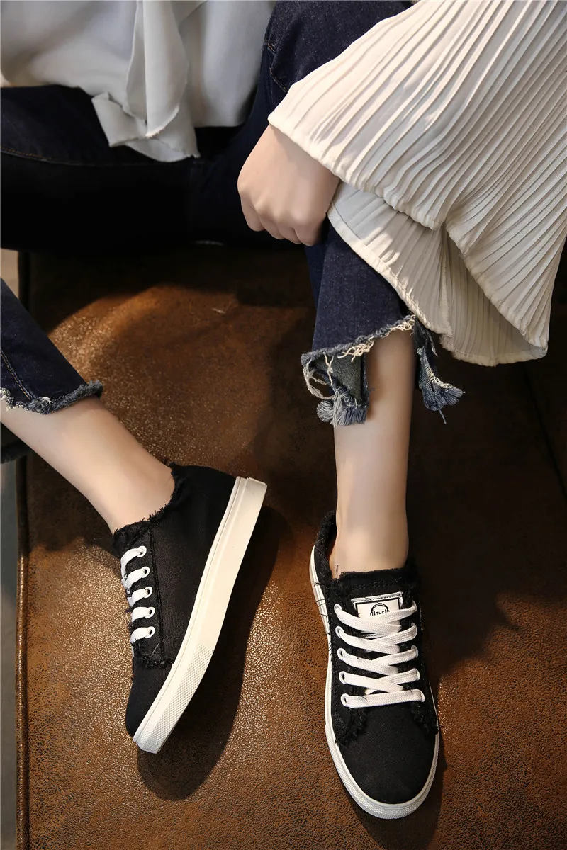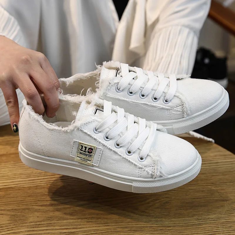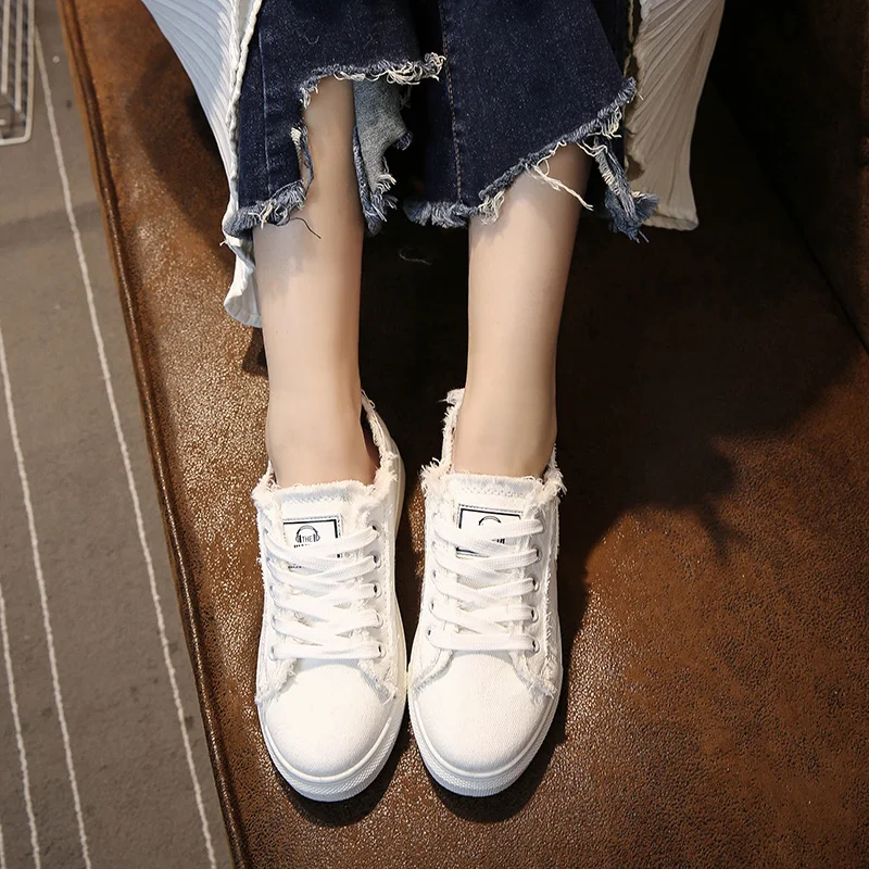 Thebams 2018 New Spring and Summer With White Shoes Women Flat Leather Canvas Shoes Female White Board Shoes Casual Shoes Female