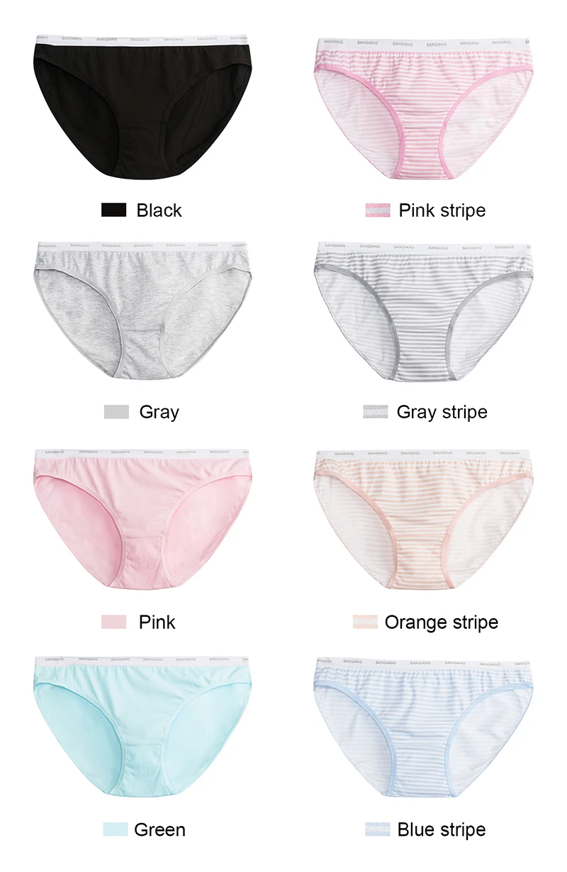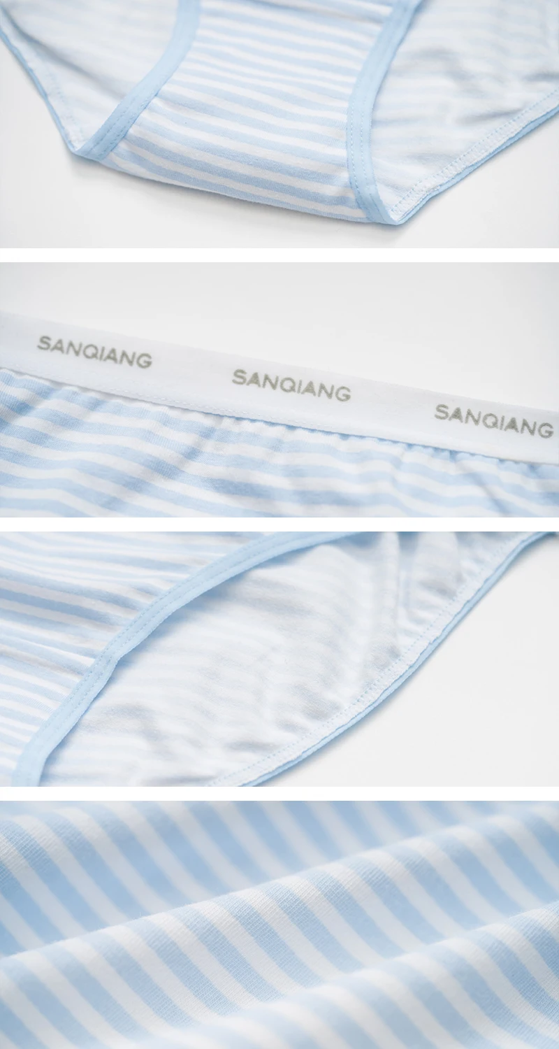 THREEGUN 1 Piece Bikini Briefs Women Cotton Low Rise Panty Stripe Sexy Female Intimates Lingerie Breathable Sexy Underpants