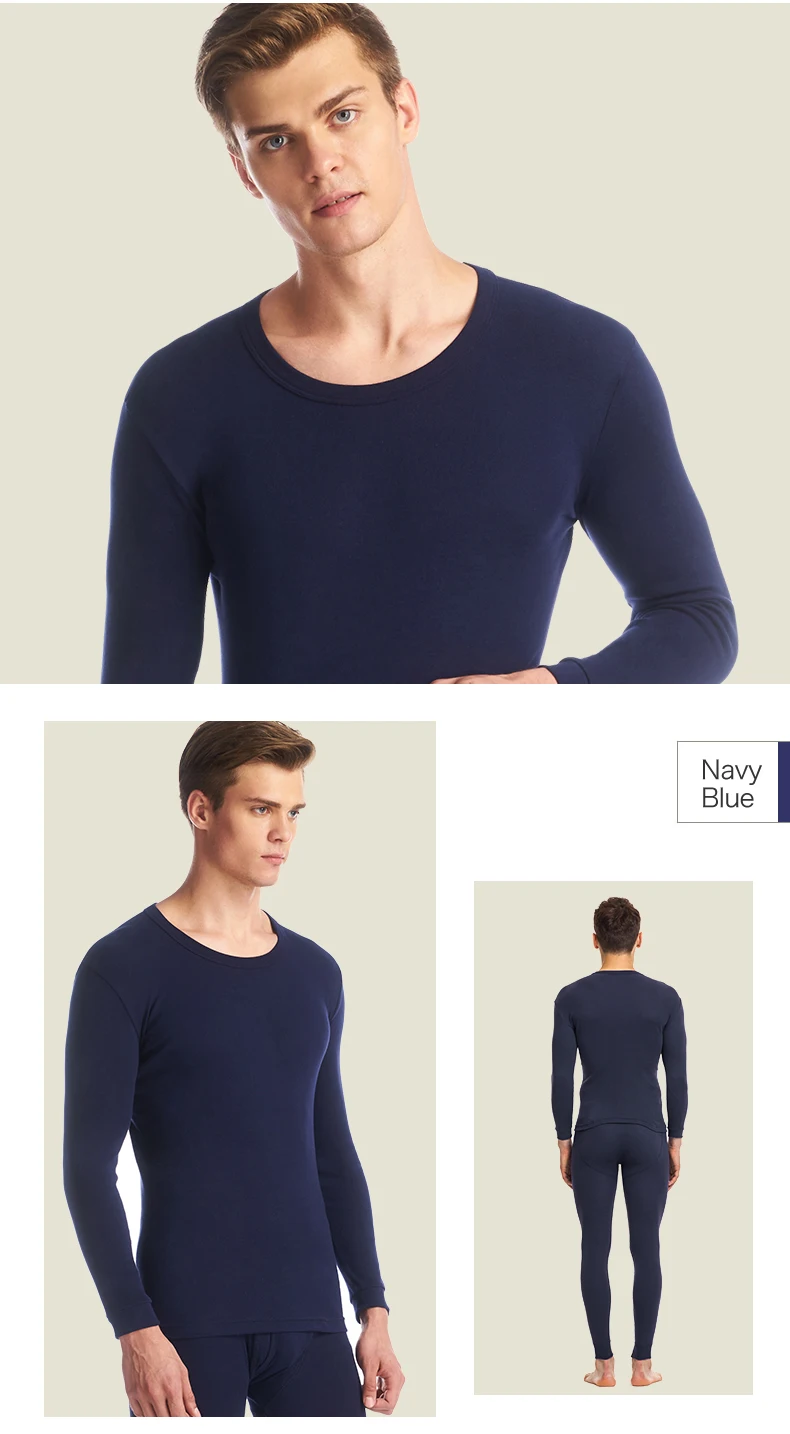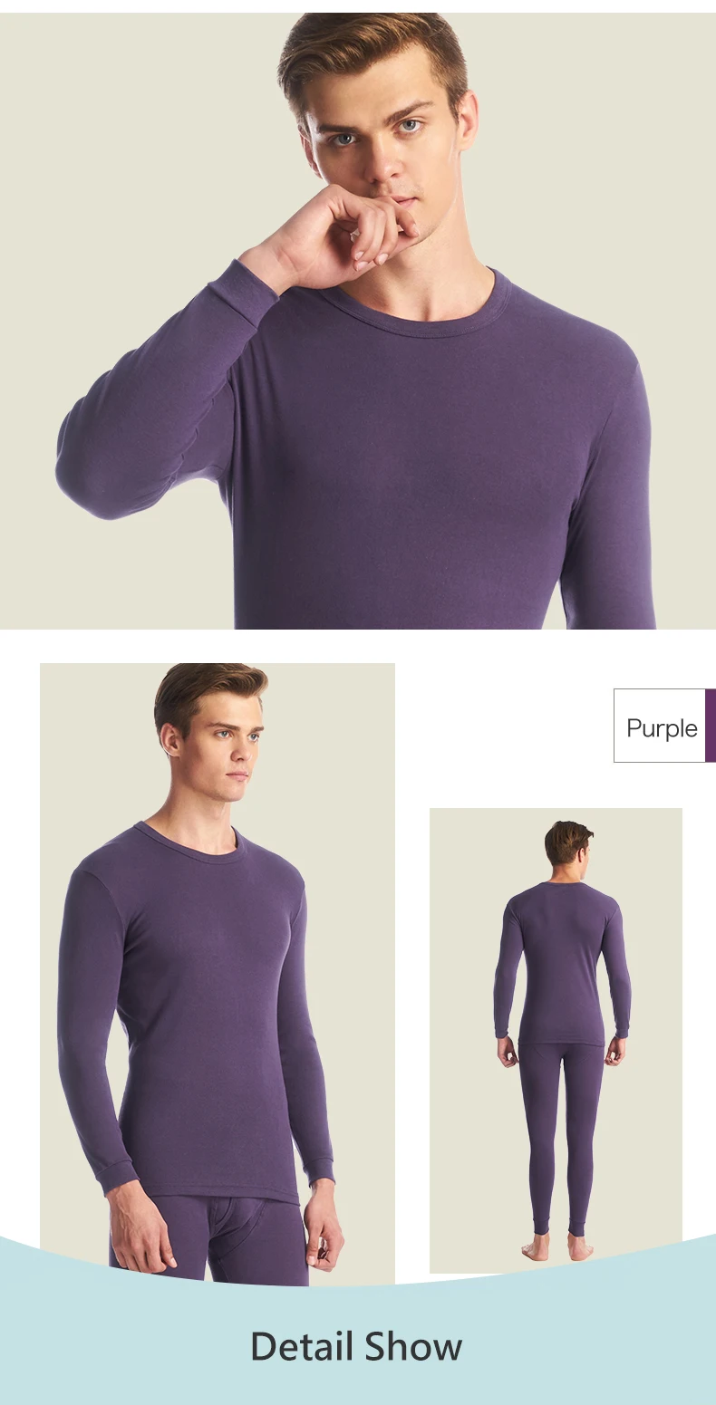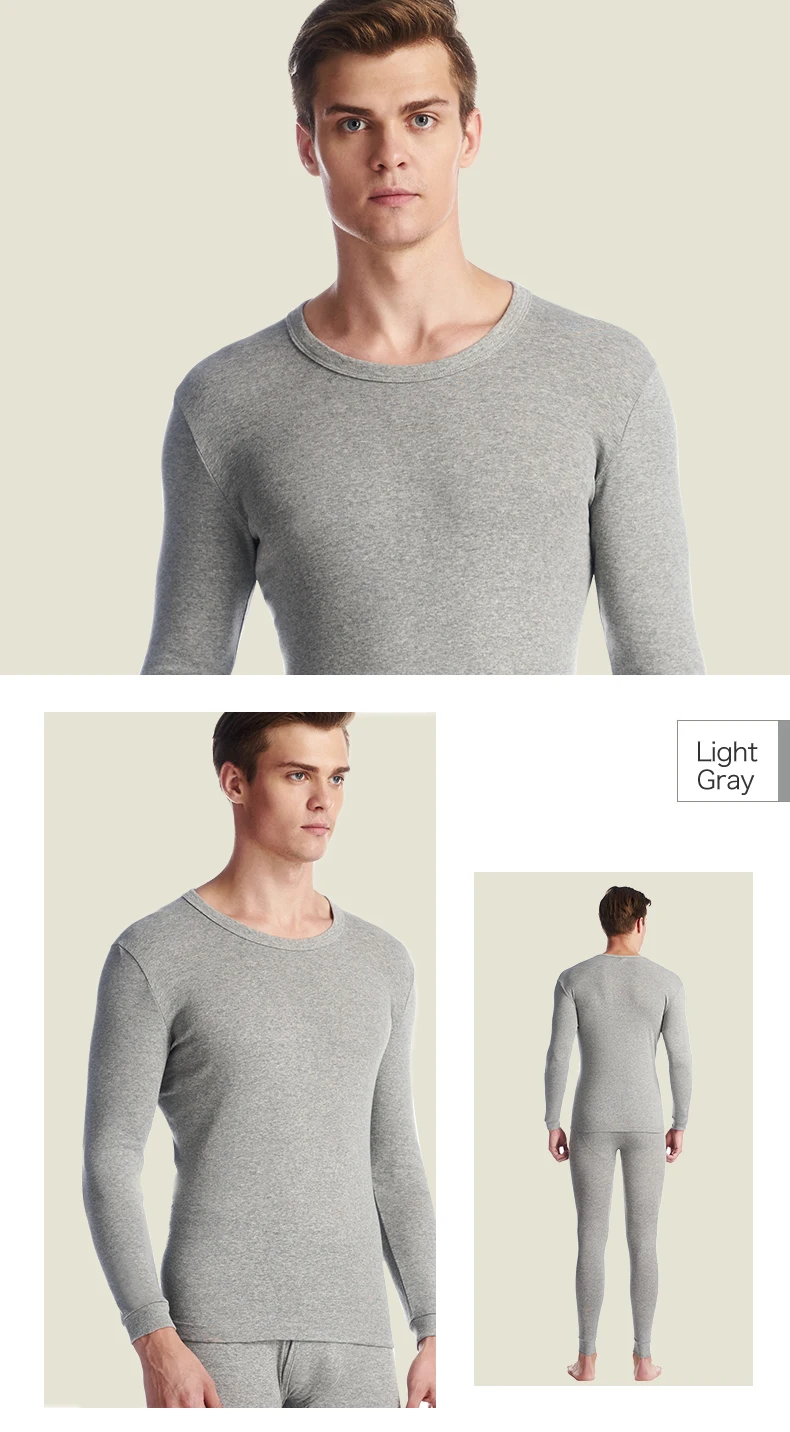 THREEGUN 100% Cotton Winter Round Neck Warm Long Johns Set For Men Ultra-Soft Solid Color Thin Thermal Underwear Men’s Pajamas