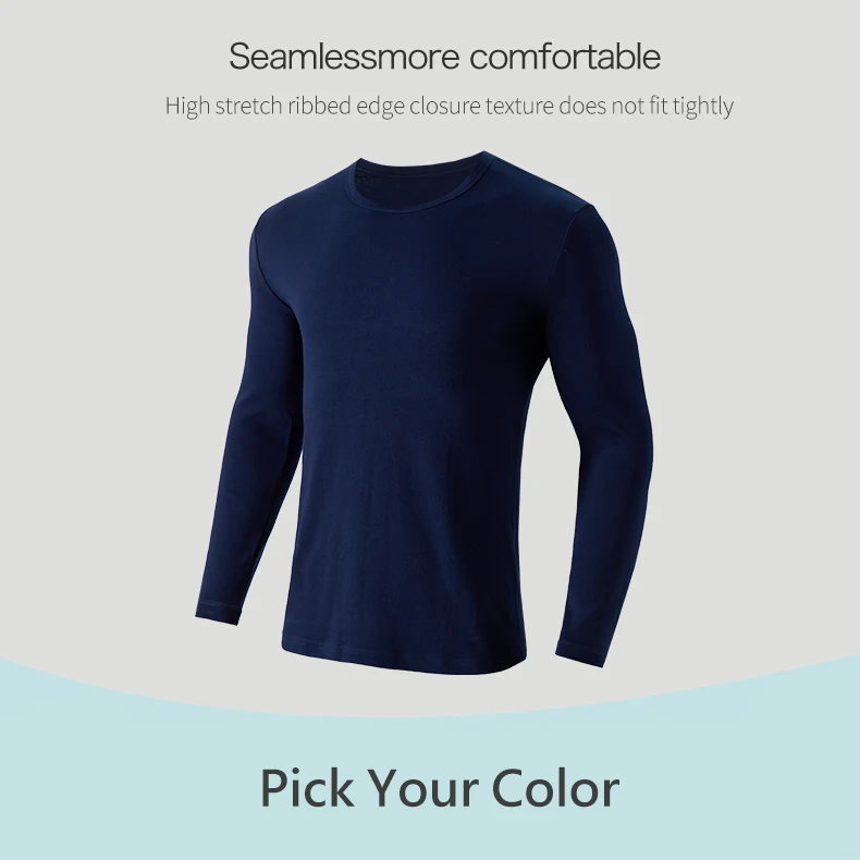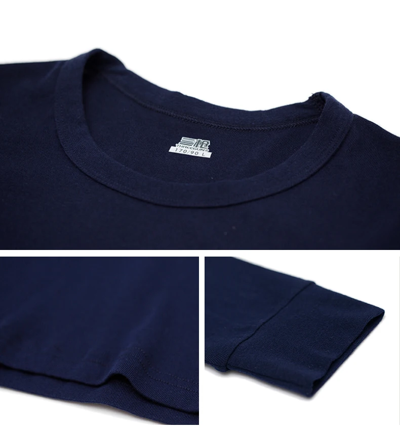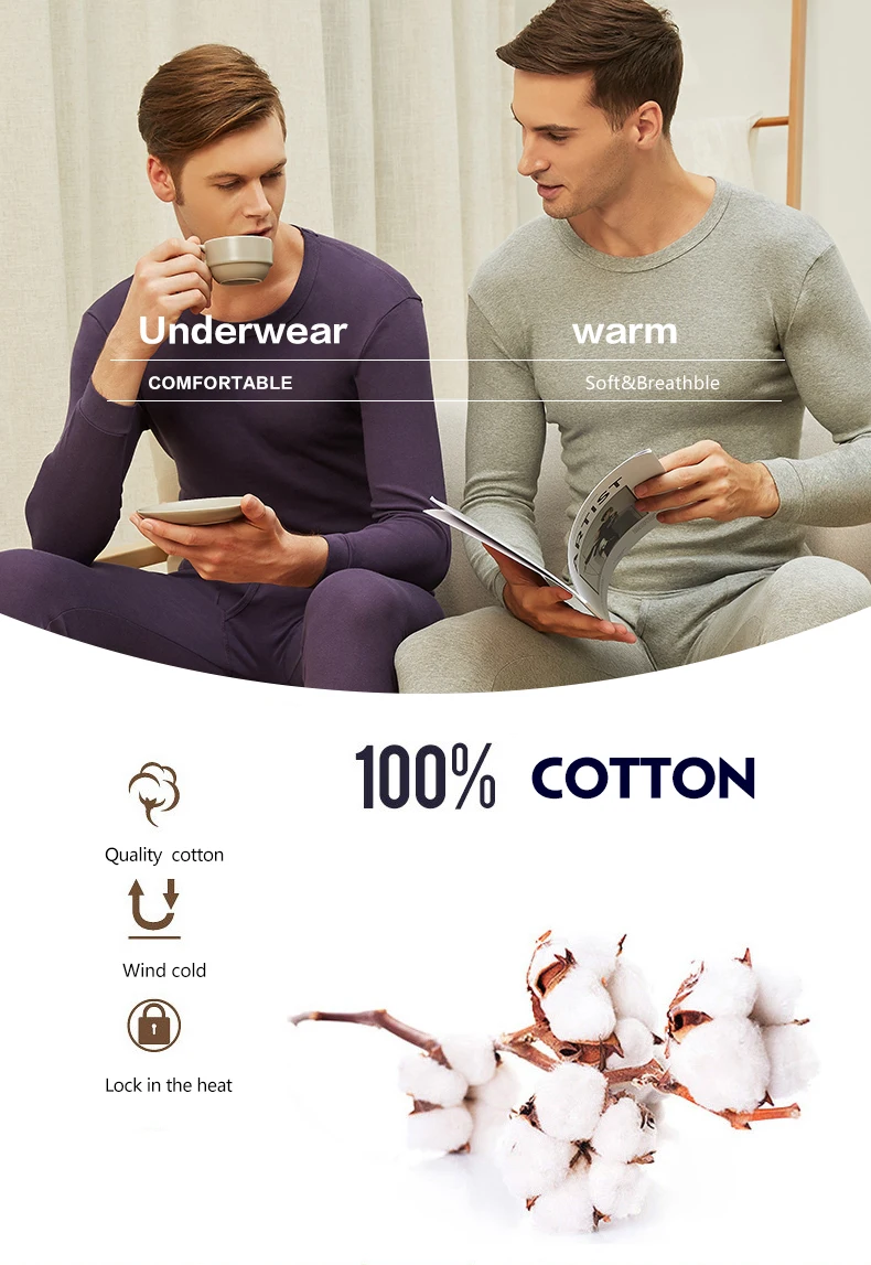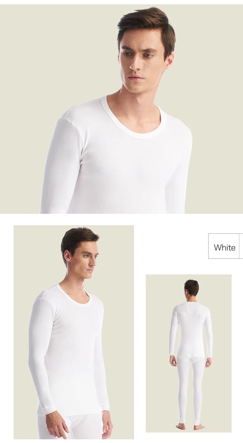 THREEGUN 100% Cotton Winter Round Neck Warm Long Johns Set For Men Ultra-Soft Solid Color Thin Thermal Underwear Men’s Pajamas