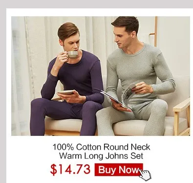 THREEGUN 100% Cotton Winter Round Neck Warm Long Johns Set For Men Ultra-Soft Solid Color Thin Thermal Underwear Men’s Pajamas
