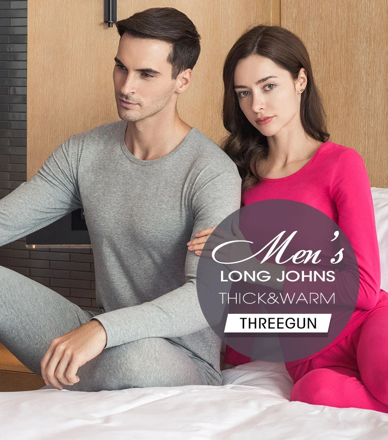 THREEGUN Lycra Underwear Winter Mens Warm Thermal Underwear Couple Male Long Johns Set Second Thermal Female Skin vetement homme