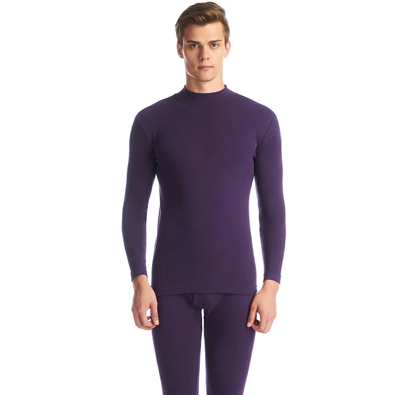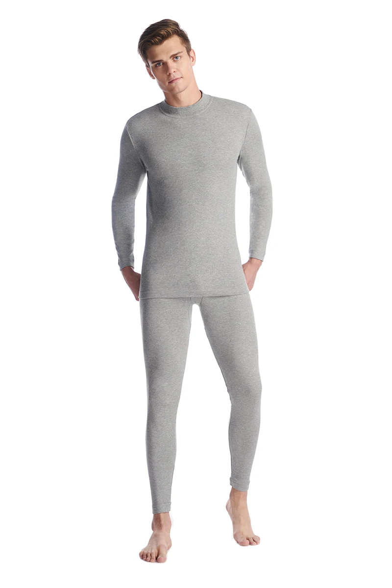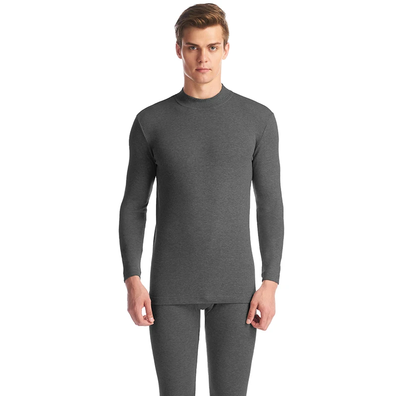 THREEGUN Underwear Winter Mens Warm Thermal Set Male Winter Bottoms Half High Collar Undershirts Thin Invisible Roupa Termica